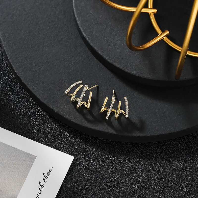 Женские серьги-гвоздики, Маленькие Геометрические металлические серьги с кристаллами, 2020, корейский Блестящий