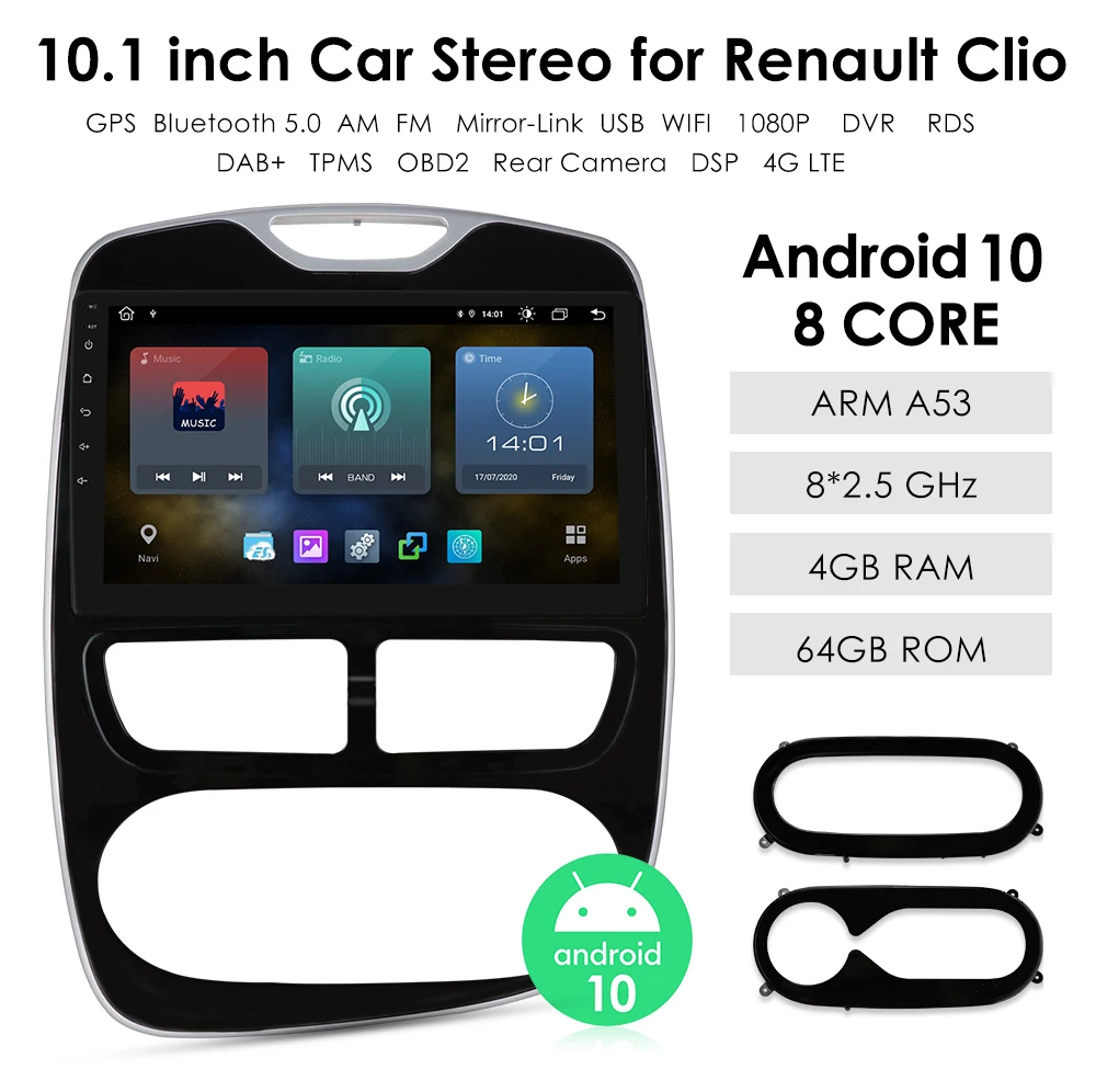 Автомагнитола 2DIN на Android 10 с GPS для RENAULT Clio 3 4 2012-2016, мультимедийный проигрыватель, 10,1 дюйма, стерео, видео, аудио плеер, навигация