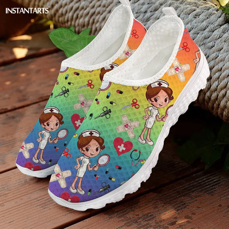 INSTANTARTS с рисунком из мультфильма; Узор с изображением сиделки женская обувь из сетчатого материала; Обувь на четыре сезона Стиль прогулочная обувь из дышащего материала для дам кормящих обуви