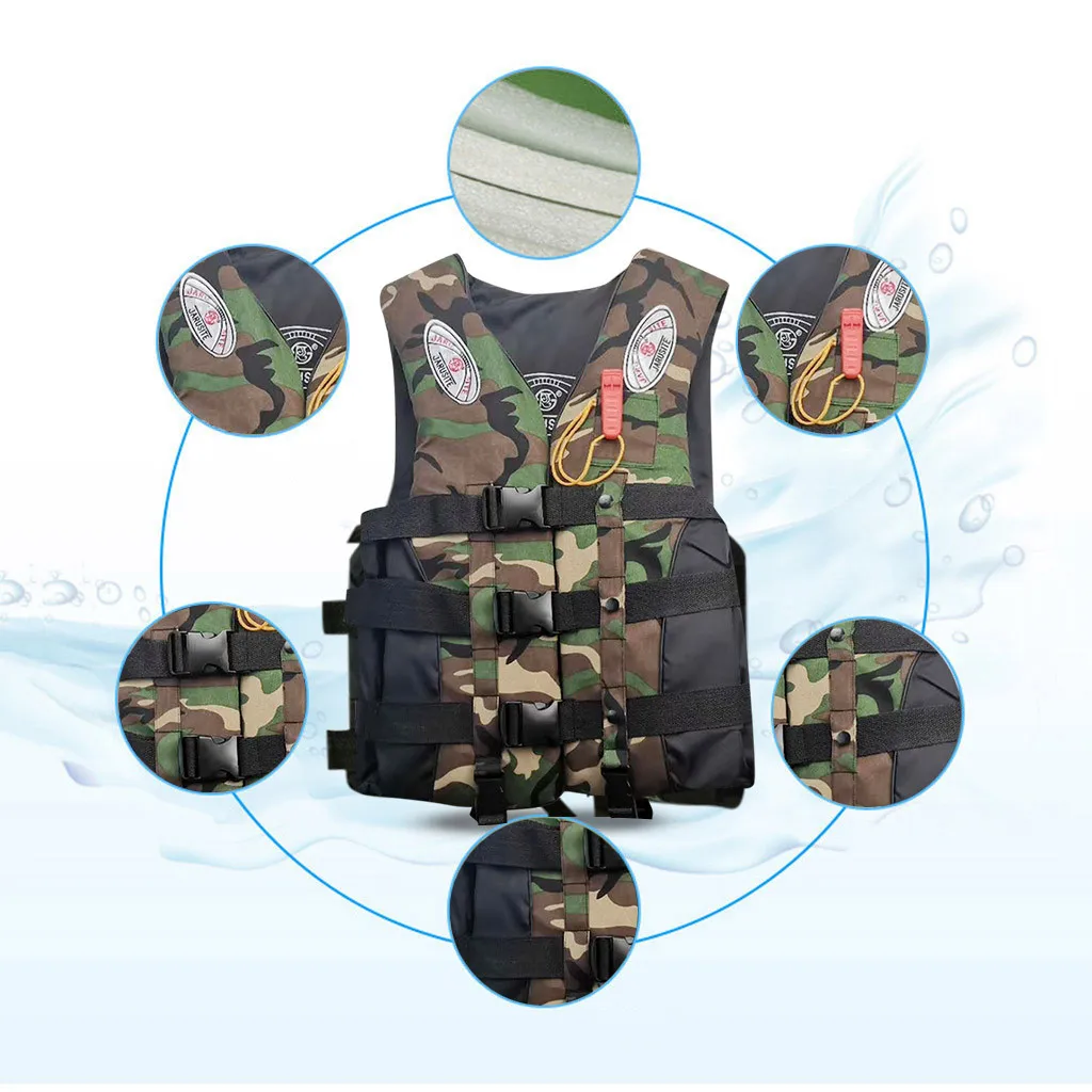 Характеристики: Название продукта: спасательный жилет Материал поверхности: ткань Оксфорд из полиэстера 300 D Материал плавучести: EPE Цвет: камуфляж Плавучесть:> 7,5 кг Применение: катание на лодках, серфинг, парусный спорт, виндсерфинг, рыбалка, лыжи и т. д. Посылка: 1 спасательный жилет