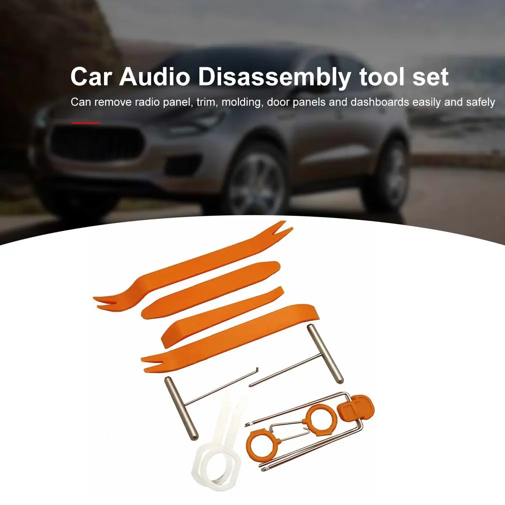 Особенности:1. Используется для демонтажа внутренней панели, приборной панели и аудио панели управления CD автомобиля.2. Также можно использовать для внутренней и наружной отделки, для удаления широкого края, устройство для удаления рукоятки или обивки зажимов.3. Может легко и безопасно удалять радиопанель, отделку, литье, дверные панели и панели приборов.4. Может уменьшить вогнутые и выступающие шрамы, оставленные с помощью отвертки или других неэффективных инструментов.5. Конструкция пластиковых инструментов позволяет избежать царапин и повреждения краски транспортного средства, кожи, хрома и других поверхностей. Описание:1. Это инструмент для демонтажа автомобильного аудио.2. Подходит для любой модели автомобиля, включает в себя несколько отличительных инструментов для легкой дверной панели и снятия автомобильного аудио.3. Идеально подходит для демонтажа и сборки радиоприемников, решетка для динамика, панель, ЖК-экран, приборная панель, отделка, формовка, дверные панели, другие видео и аудио системы на автомобилях. Характеристики:Название: автомобильное снятие магнитолы набор инструментовМатериал пластикЦвет: оранжевыйКоличество: 4 шт./компл., 12 шт./компл. (опционально) Посылка:Размер посылка: 100x100x2 0 мм/3.9x3.9x0.78inПосылка Вес: 50 г/1,75 ozOPP пакет посылка Посылка включает в себя:1 x набор инструментов для разборки аудио автомобиля Примечание:1. Из-за световых эффектов, яркости монитора, настроек контрастности и т. д. могут быть некоторые незначительные различия в цветовом тоне изображения и фактического элемента.2. Пожалуйста, учитывайте разницу в 1-2 мм из-за ручного измерения, спасибо.
