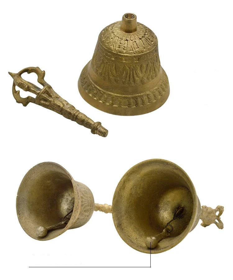 Латунные ритуальные колокольчики, Тибетские буддийские колокольчики для гадания, Викка фэншуй, громкий вызов, медный Колокольчик для медитации, молитвенный будильник