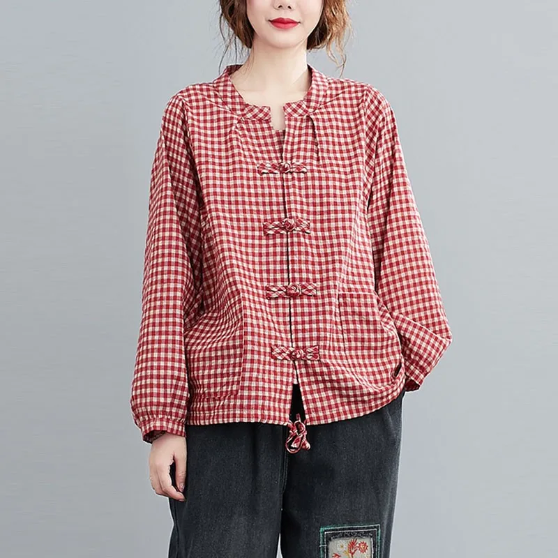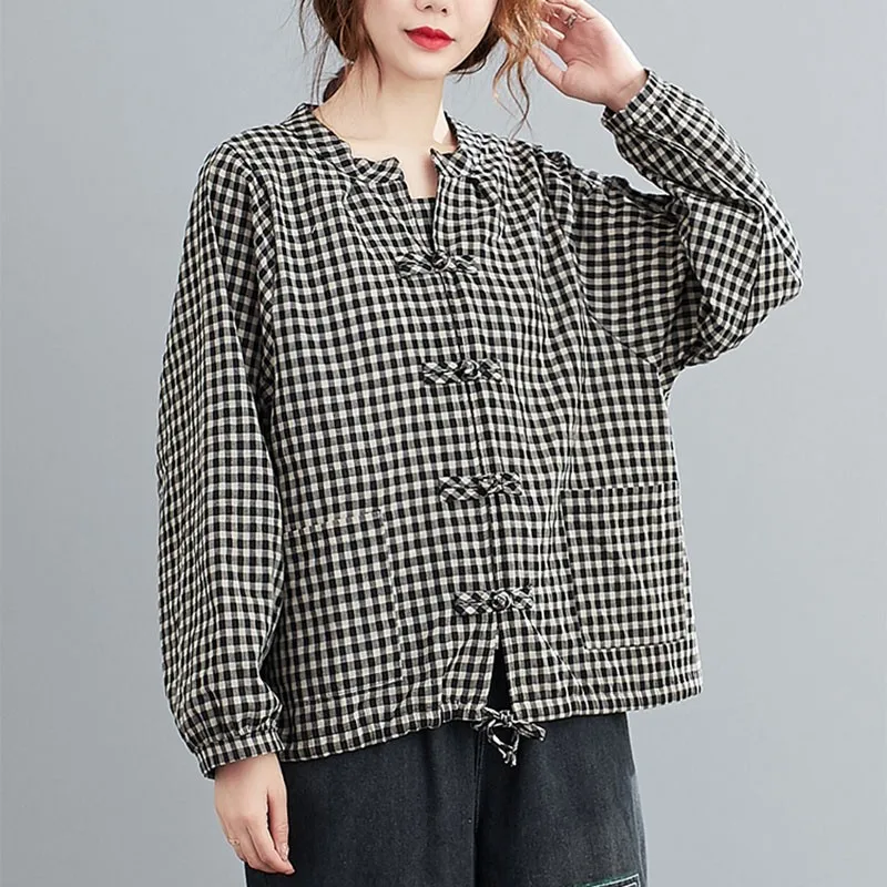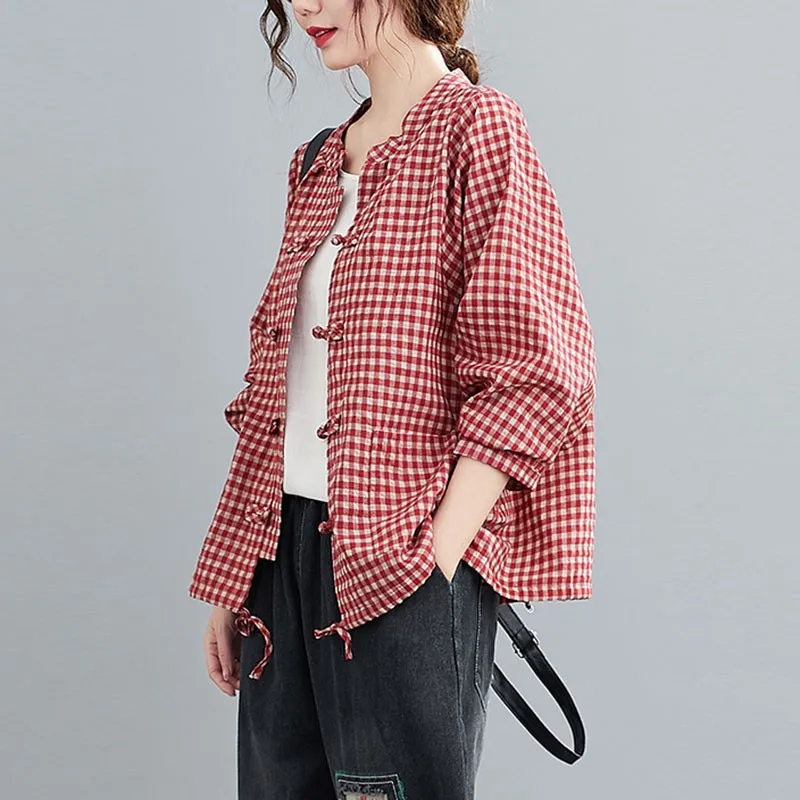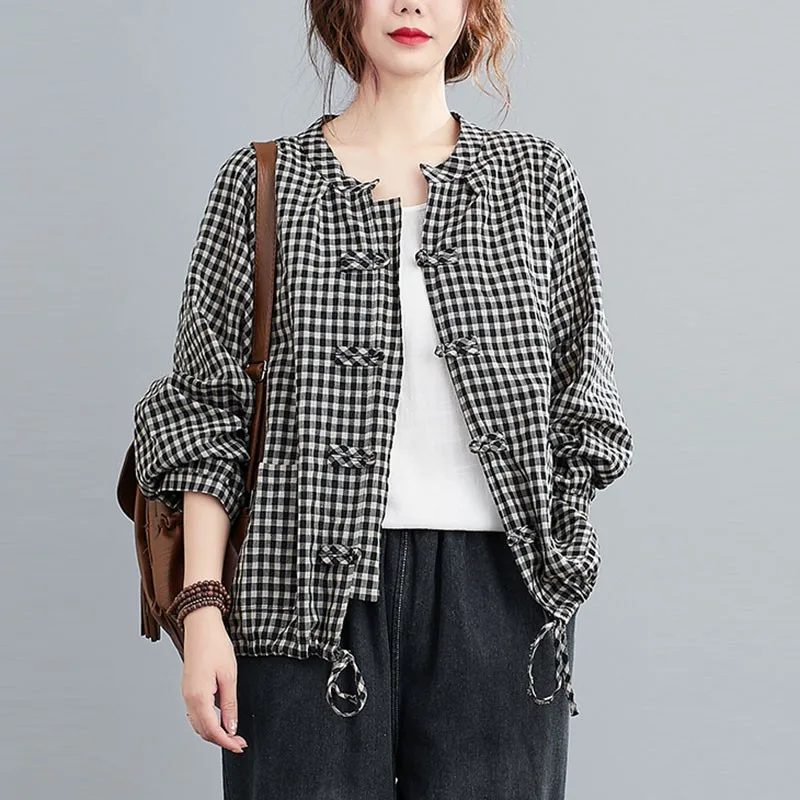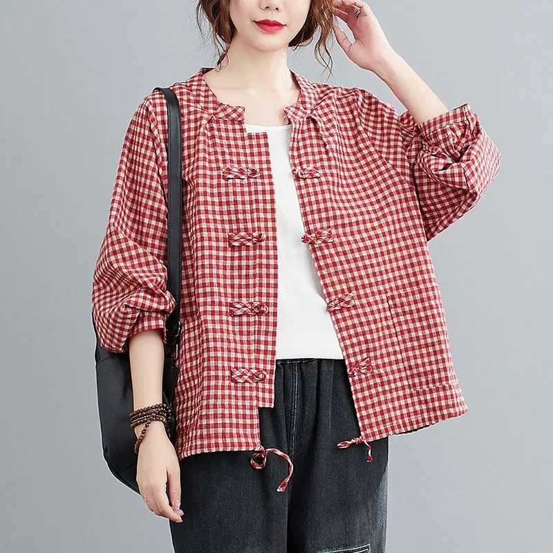 Куртка женская в стиле оверсайз из хлопка и льна, винтажная свободная повседневная верхняя одежда в клетку в стиле арт, S1707, осень 2020