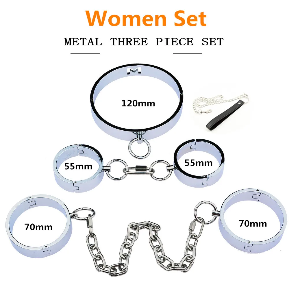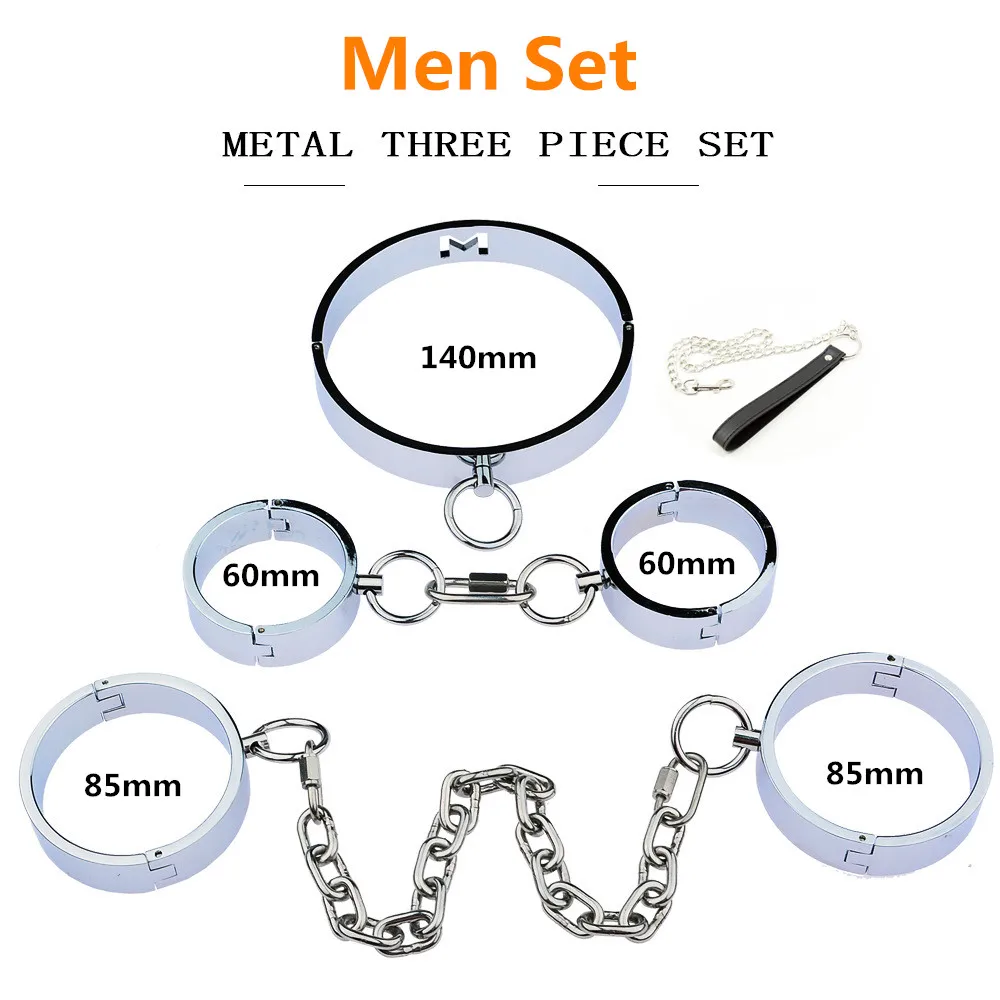 Набор тяжелых рабов, набор металлических наручников, манжеты на лодыжке, ошейник с цепочкой для мужчин, женщин, мужчин, фетиш, БДСМ, секс-игрушки