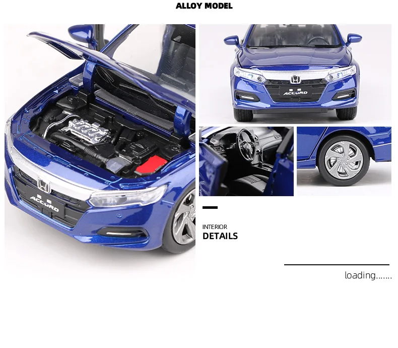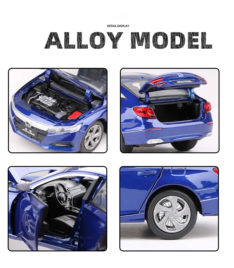 Модель Honda Accord, литье под давлением, автомобиль со звуком и светом, детская игрушка, коллекционный подарок на день рождения для мальчика, 1:32