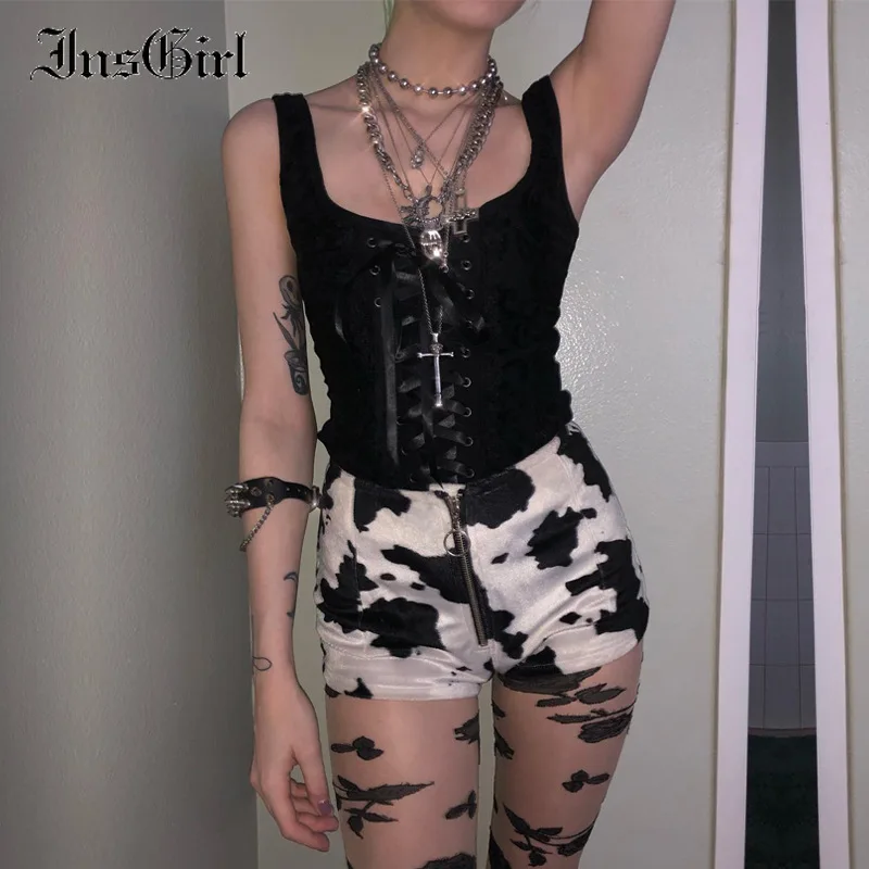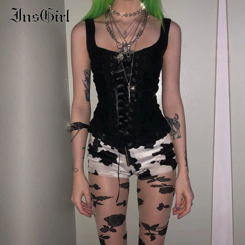 Женский топ на шнуровке InsGirl, с квадратным вырезом, в готическом стиле