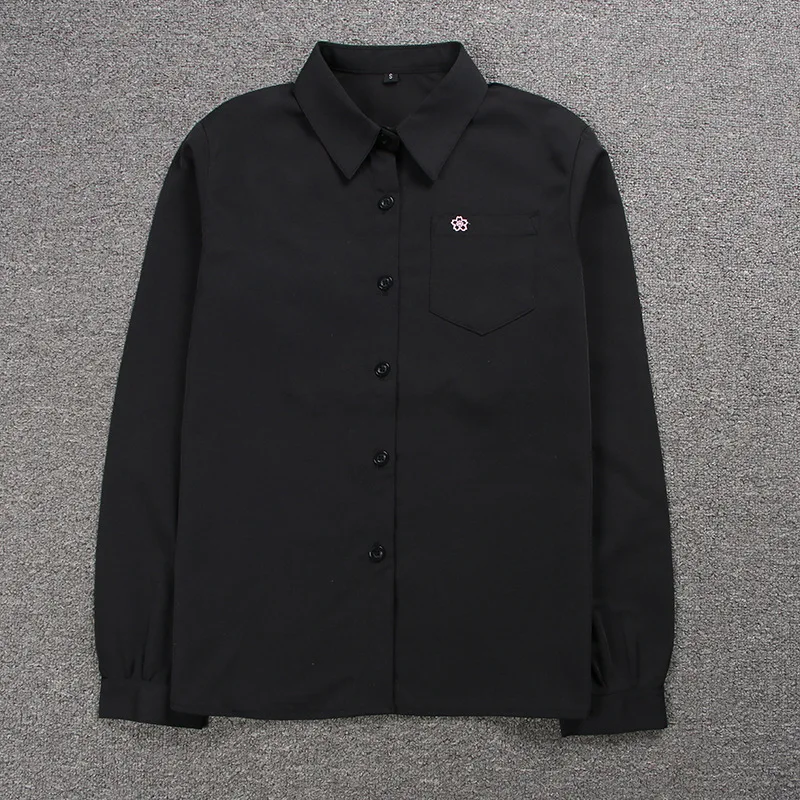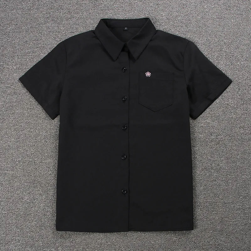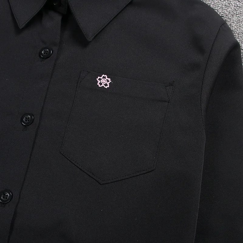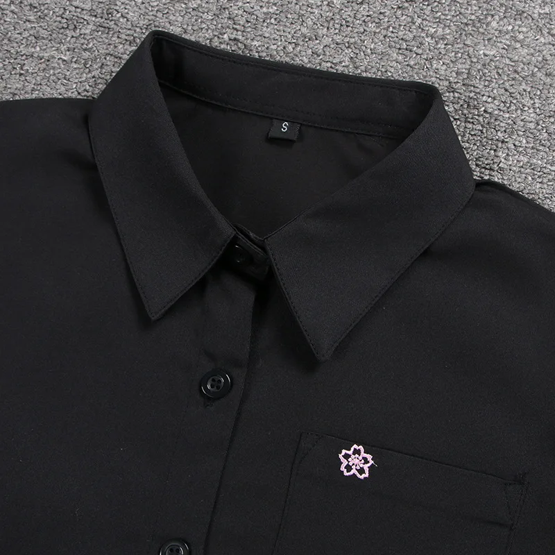 Милые Сакура короткими рукавами и цветочками для девочек Черная блуза Т-образной формы, блуза для девочек, средней длины форма для старшей школы Школьное платье Jk Равномерное Топ
