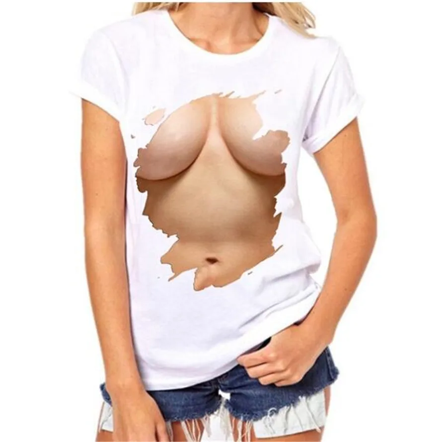 Женские летние крутые топы, Повседневная футболка с 3D-принтом груди и коротким рукавом, с круглым вырезом, Сексуальная футболка с принтом груди