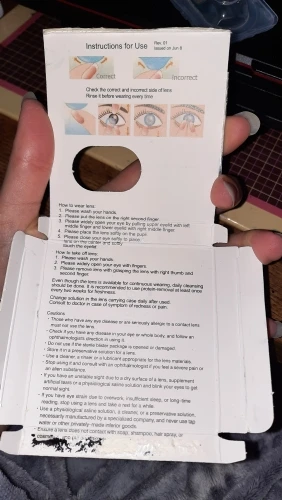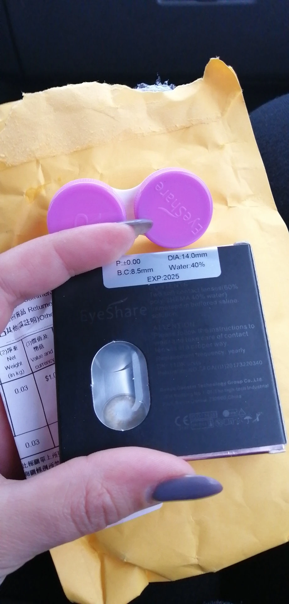 Заказ был оформлен 11.11 и доставлен 2.12. Что касается самих линз, они выглядят интересно, но не совсем то что ожидала, цвет Taylor violet на карих выглядит как просто серый, хотя а картинке похоже на голубой, но это ладно не так страшно. Дело в том, что когда их надеваешь перед глазами муть из-за того что край линзы попадает на зрачок, при этом другой край линзы ощущается на глазу, что тоже малоприятно. Носить их долго точно не получится потому что это тяжело и неприятно. Короче подойдет на крайние случаи, пофоткаться или праздники.