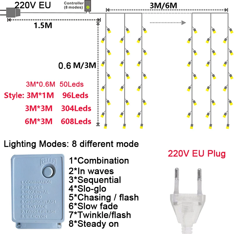 СВЕТОДИОДНАЯ Гирлянда-занавес с дистанционным управлением, 3 м