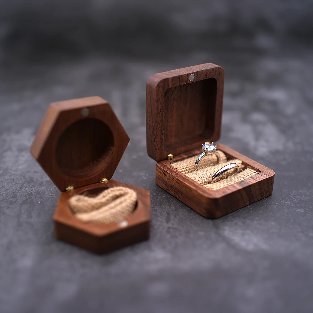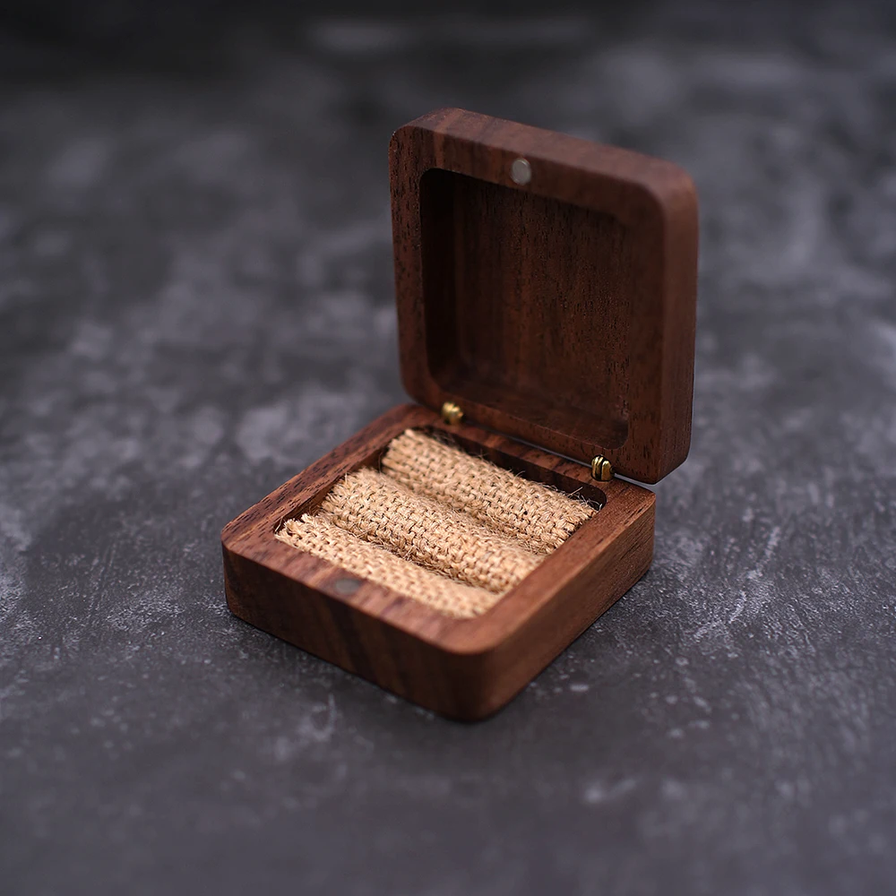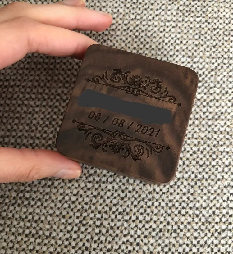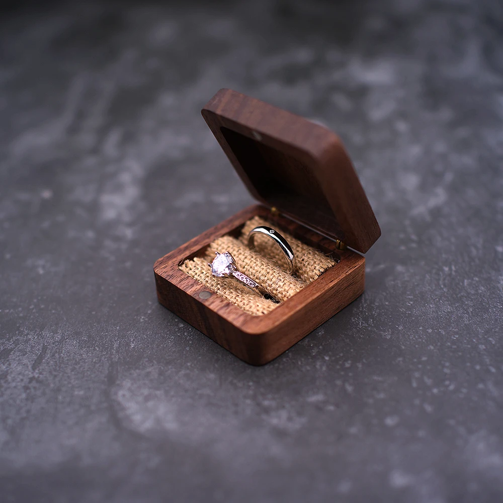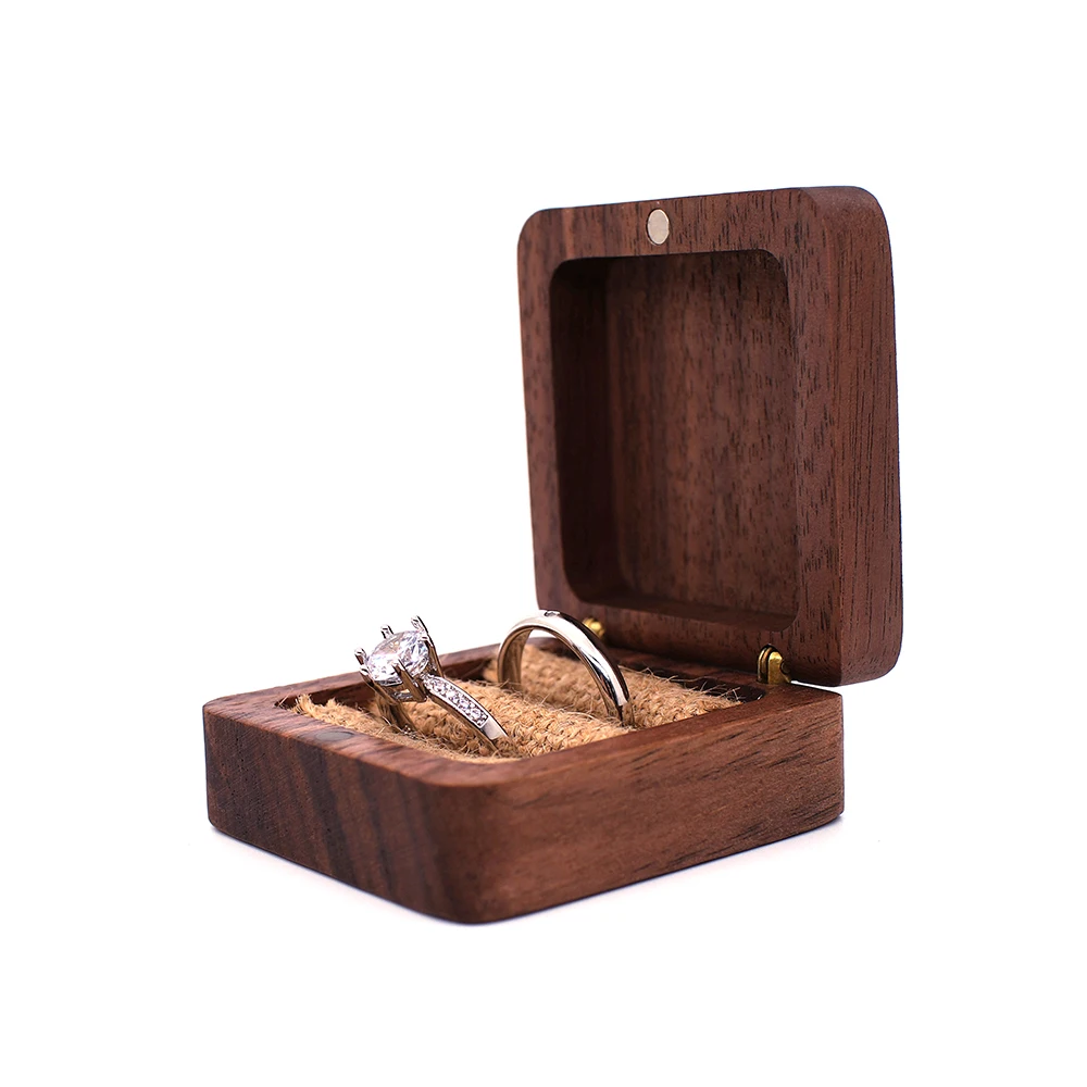 Деревянная коробка для обручального кольца на предъявителя, деревянная коробка для обручального кольца жениха и невесты с гравировкой имени, квадратная Подарочная коробка для ювелирных изделий