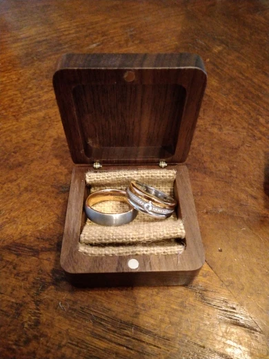 mooi doosje, alleen kunnen ringen niet rechtop in doosje is voor plat in doosje.