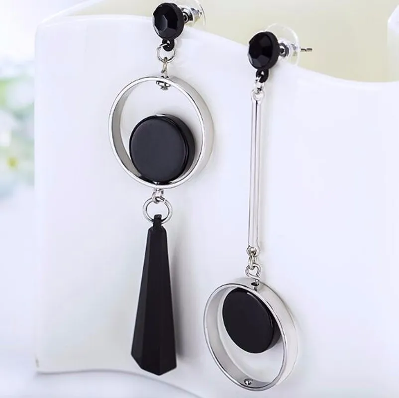 Ассиметричные модные массивные длинные серьги версии AB, металлические двойные кольца, акриловые двойные диски, женские серьги, ювелирные изделия