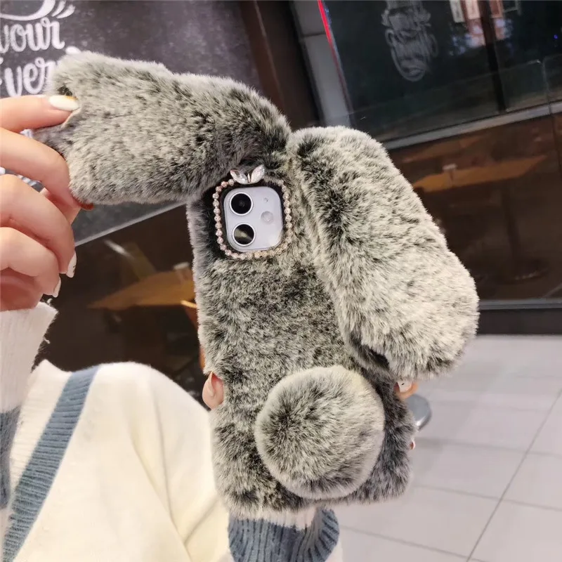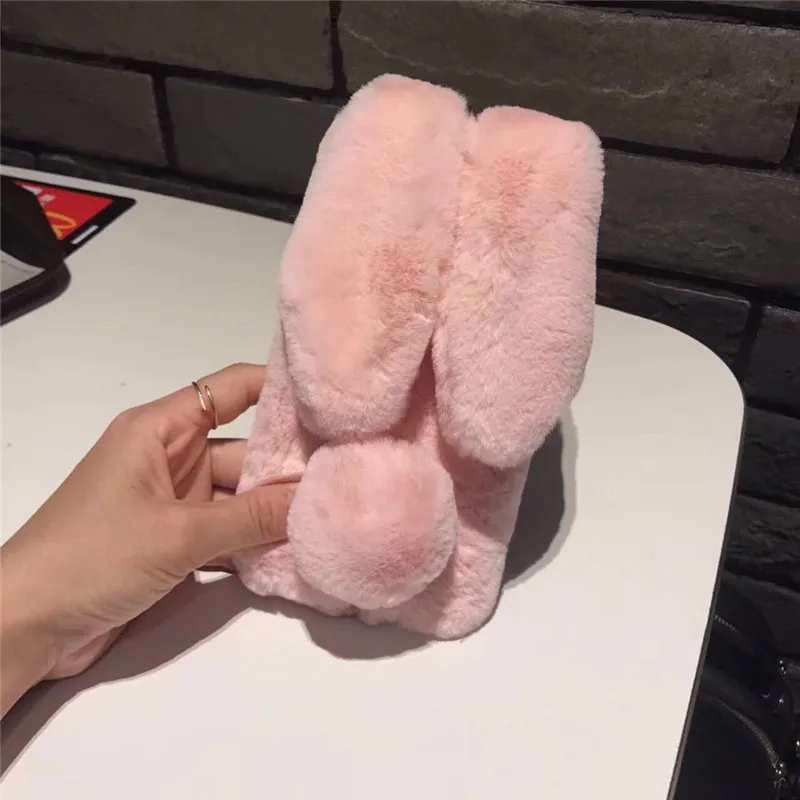 Чехол для телефона с объемными кроличьими ушками, флисовый чехол дл...