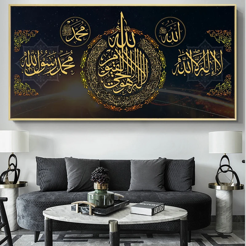 Плакаты и принты с буквами Корана, настенная живопись на холсте, мусульманская каллиграфия, картины для гостиной, домашний декор без рамки