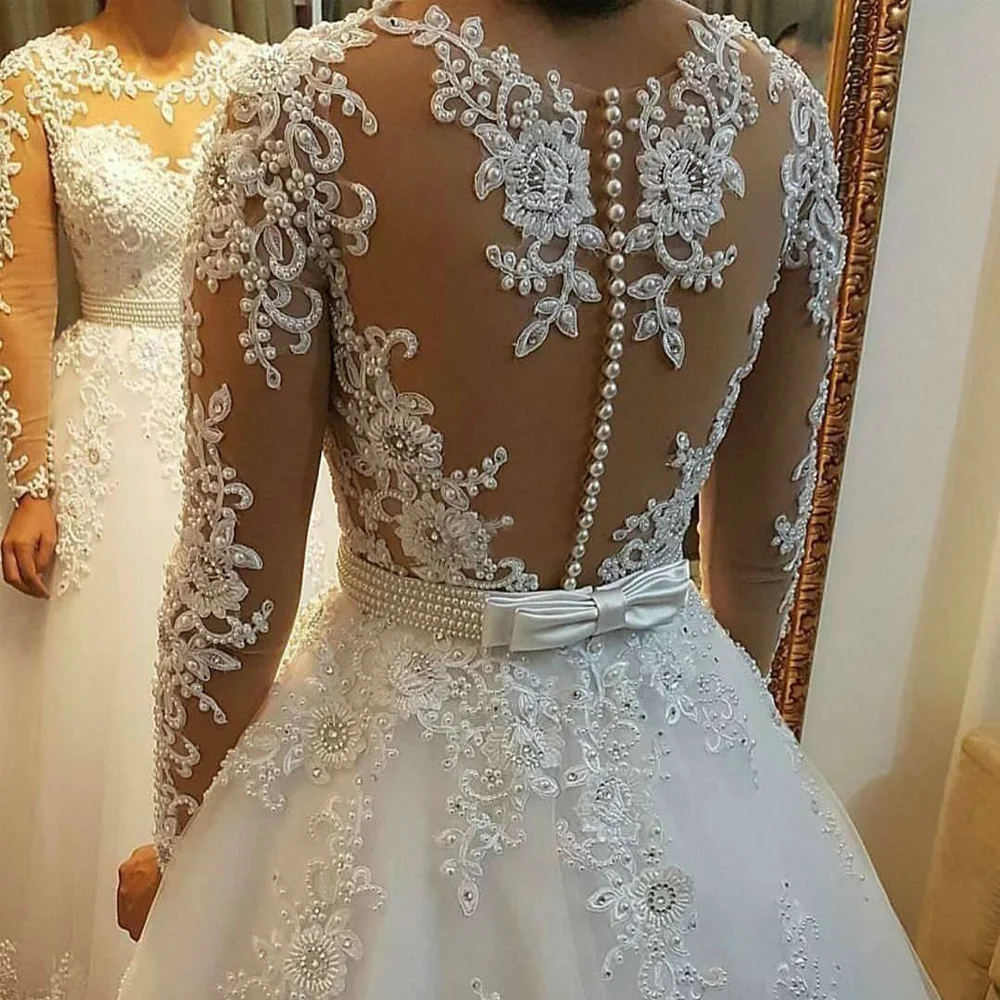Свадебное платье с жемчугом и бусинами, 2 в 1, Бразилия, 2020, Vestido De Novia, свадебное платье с кружевной аппликацией и отстегивающимся шлейфом