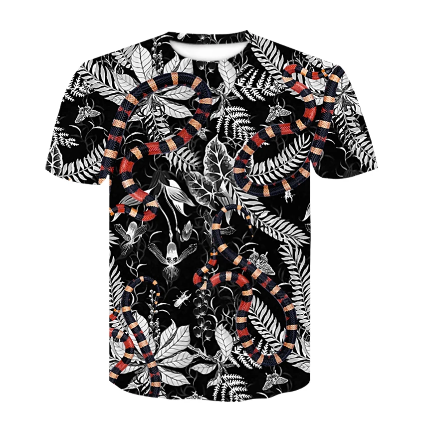 Футболка Мужскаяженская с 3D принтом змеи, забавная брендовая тенниска с коротким рукавом, одежда черного цвета, лето 2020