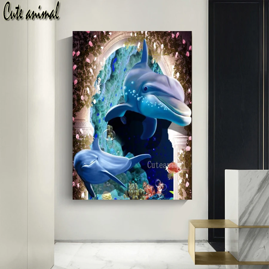 Алмазная вышивка, дельфин, подводный мир, животные, алмазная живопись, вышивка крестиком, полная квадратная круглая дрель, стразы, мозаика, подарок