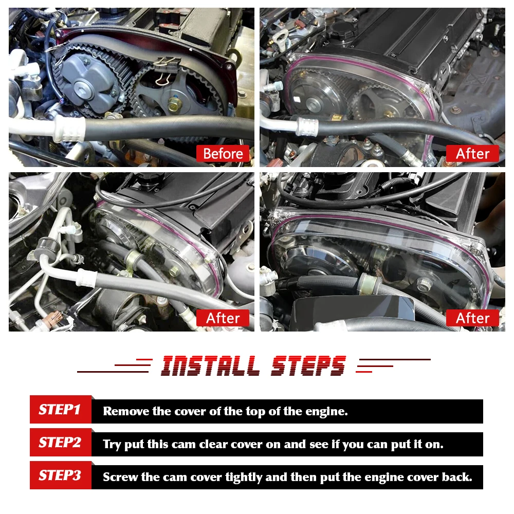 Для 05-07 Mitsubishi Lancer Evolution 9 IX 4G63t.(CT9A и CT9W шасси)При использовании aftermarket или ARP cam зубчатые болты, пожалуйста, проверьте зазор между головками болтов и крышкой кулачка перед запуском двигателя. Пожалуйста, будьте внимательны при чистке прозрачного кулачка и используйте только воду и Мягкое мыло без аминии.