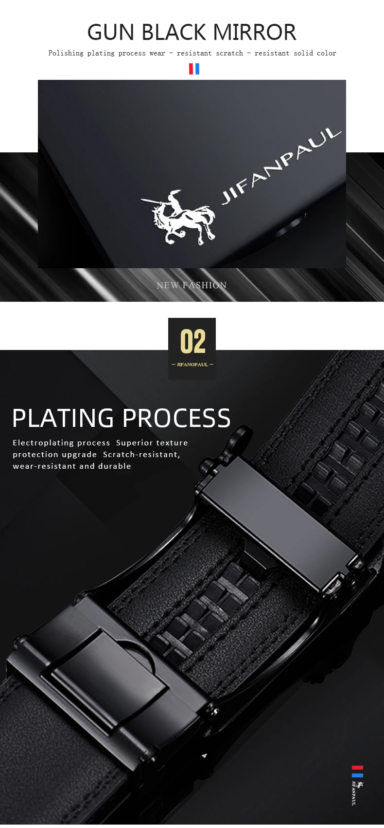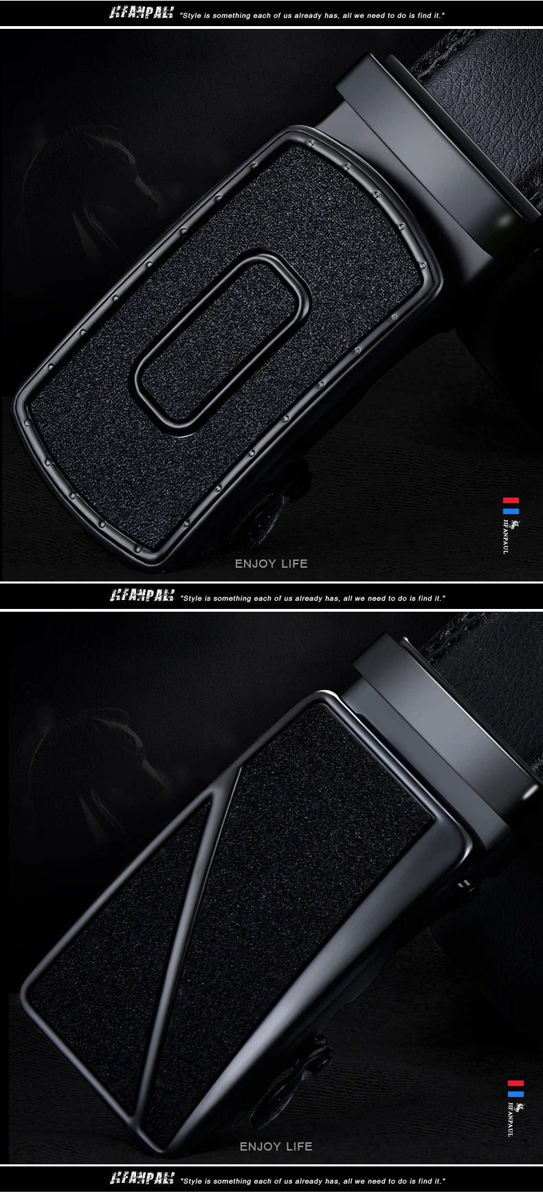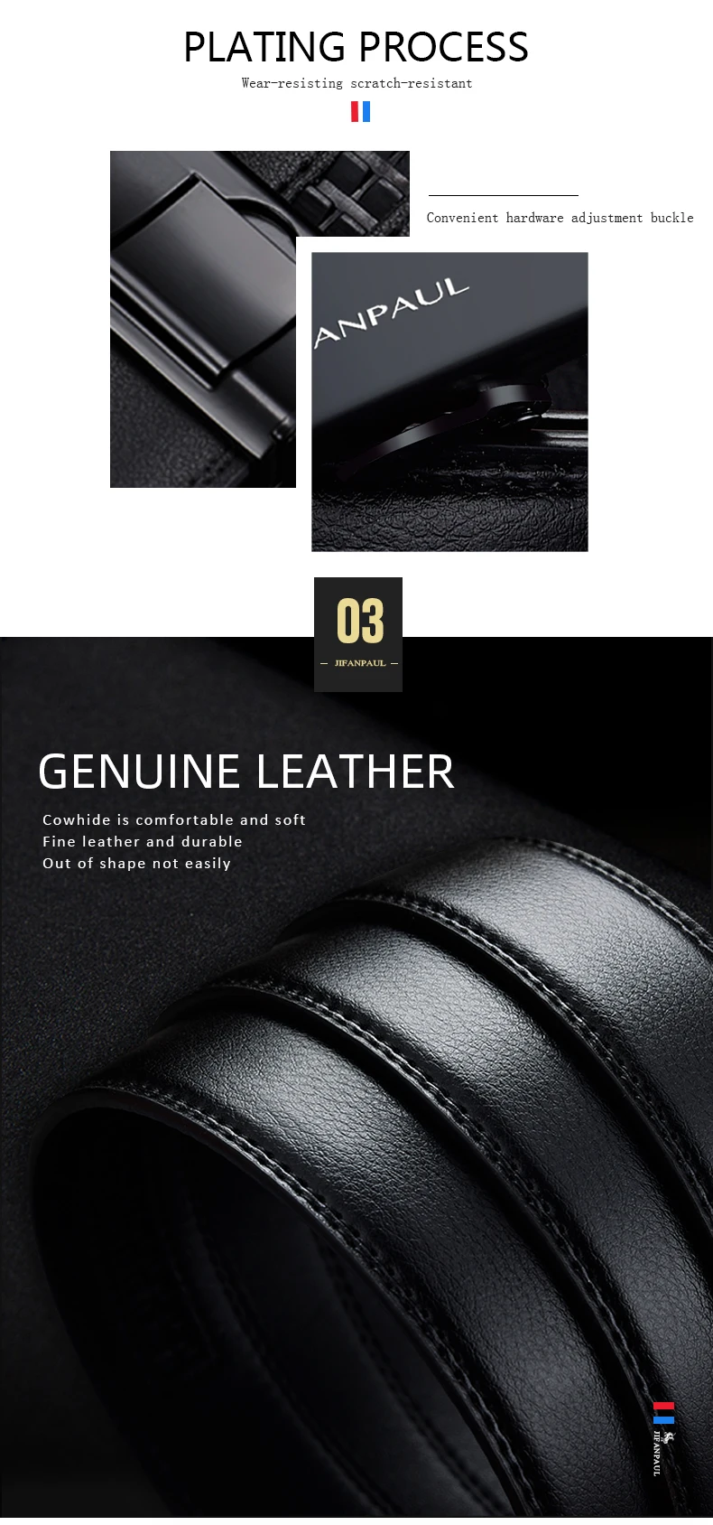Ремень мужской из натуральной кожи, черный, с автоматической пряжкой JIFANPAUL