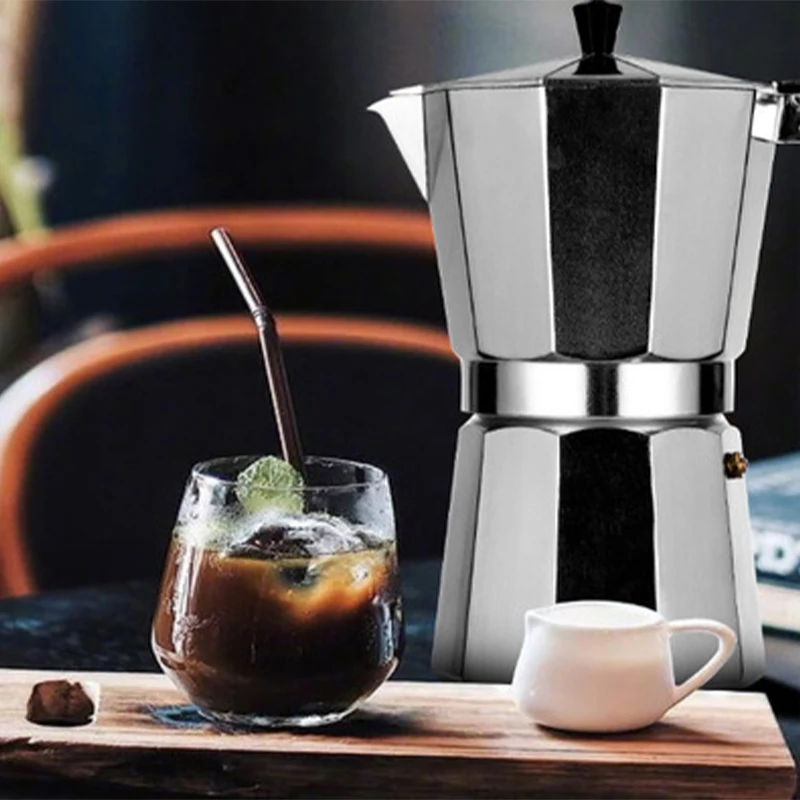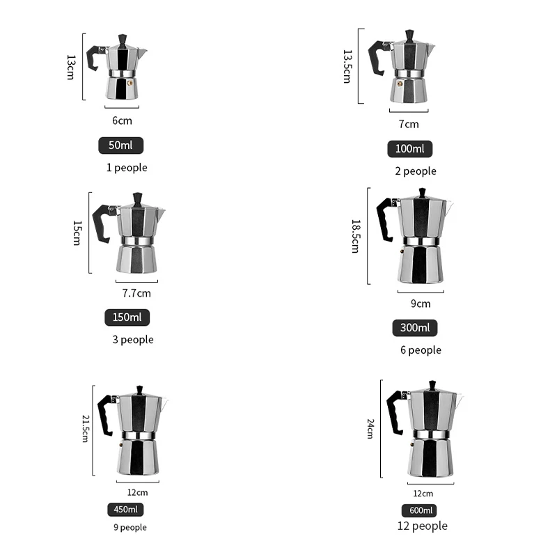 Особенности: Он имеет тонкое мастерство, лучшую теплопроводность, чем оригинальные итальянские. Он оснащен прессованной плитой для кофе (i.e. Пресс для кофейного порошка). Продукт используется для бытовой газовой плиты, печи для путешествий и спиртовой печи. «Преимущества мокко-горшка» долговечны, заваривают кофе сильным ароматом, уникальный слой кофейного масла больше людей предпочитают!