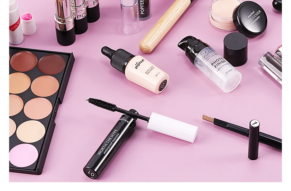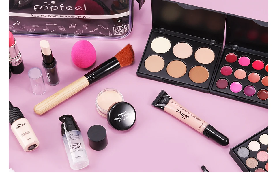 Набор косметики для наборы для макияжа 15, 20, 24 шт.набор, тени для век, помада, карандаш для бровей, блеск для губ, Кисть для макияжа, пудра, в чехле для макияжа