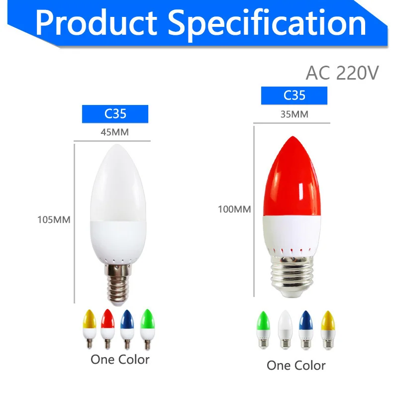 Светодиодная лампочка E27 E14 3 Вт G45 C35 RGB, Светодиодная свеча,...