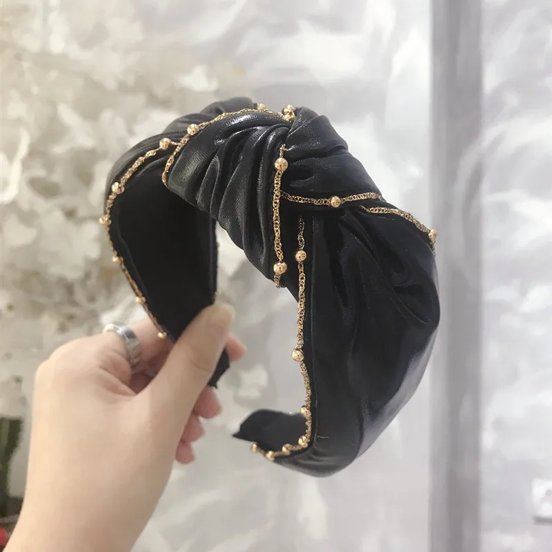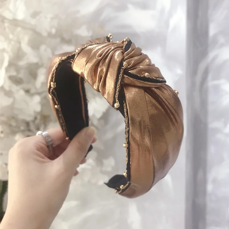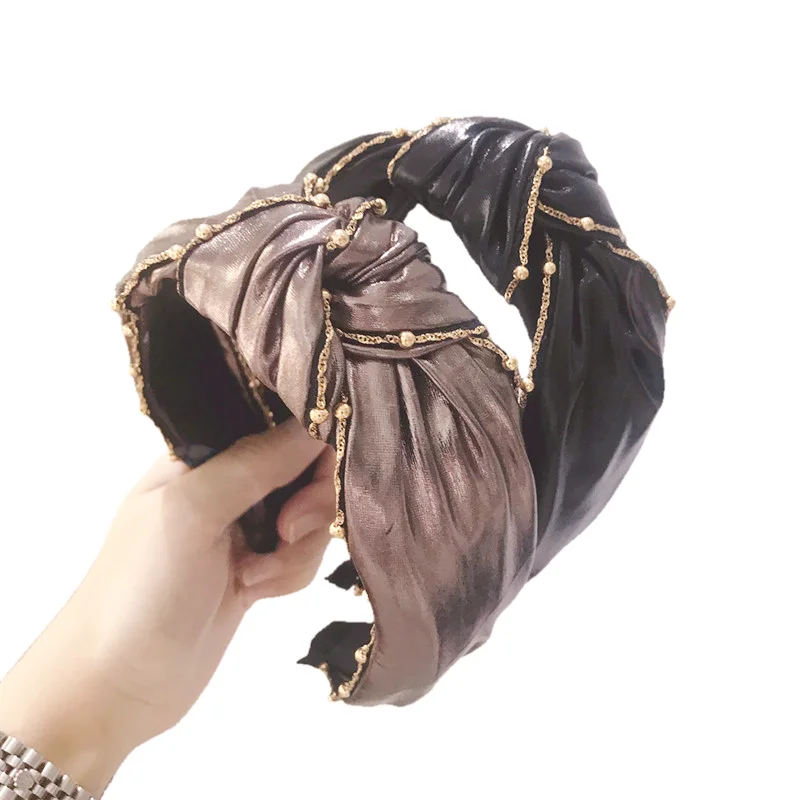 Повязки на голову для женщин и девушек, корейские широкие тканевые аксессуары для волос с узлом и жемчугом, оптовая продажа