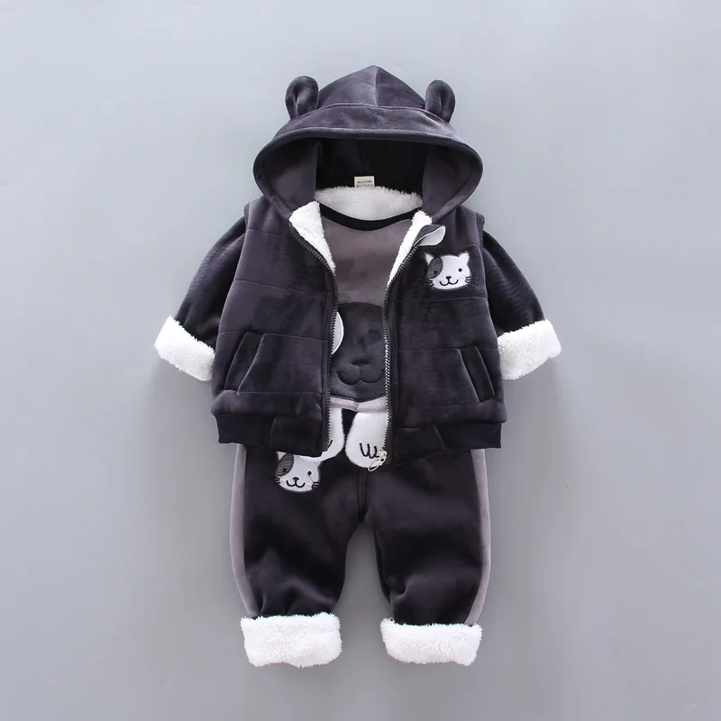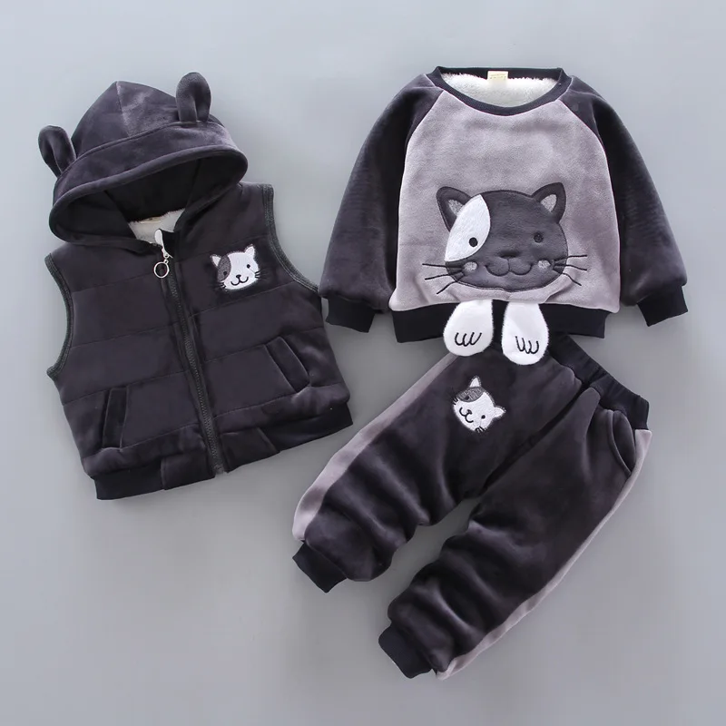 Осенне-зимние детские хлопковые Мультяшные комплекты, спортивные толстовки, футболка и штаны для маленьких девочек и мальчиков, 3 шт.компл., модная детская одежда для отдыха