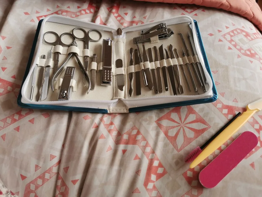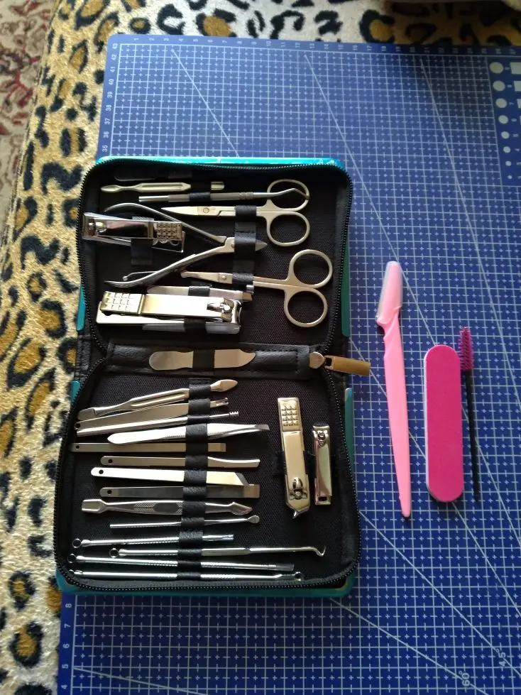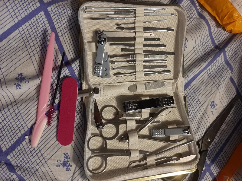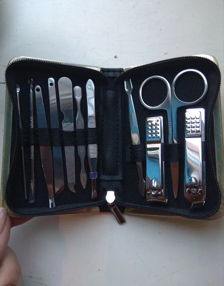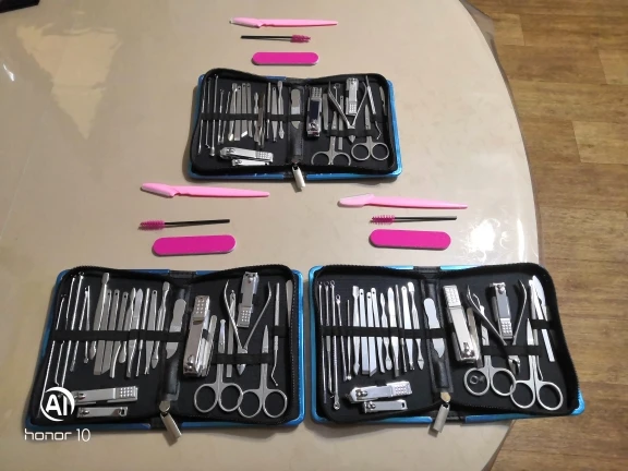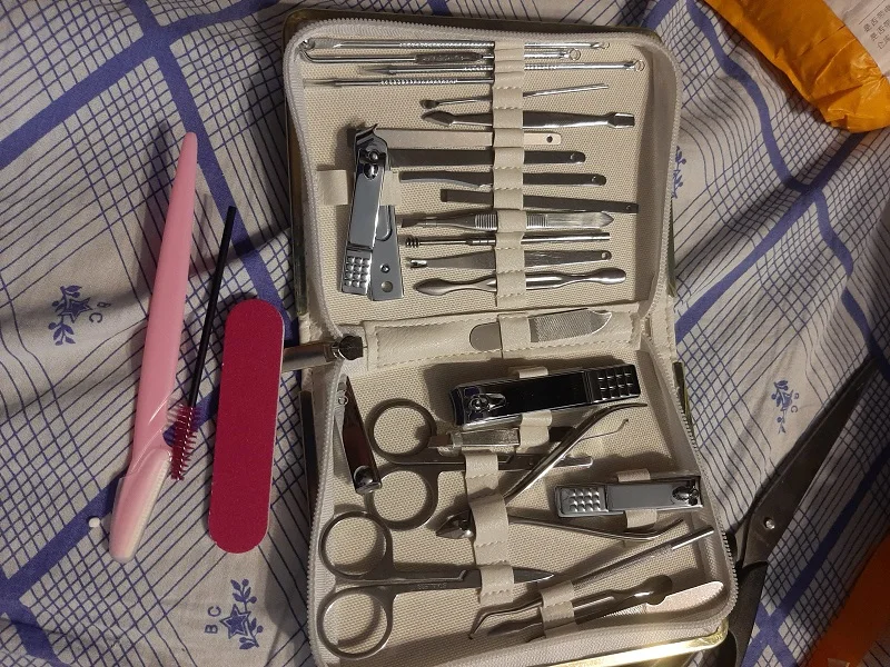 С виду набор неплохой. Инструменты, которые проверял, острые. На кусачках заточка немного сбита, есть зазубринки. До Уфы дошло за 2 недели, что очень порадовало. Продавцу спасибо за подарочки (щеточка, пилочка и ещё какой то триммер).