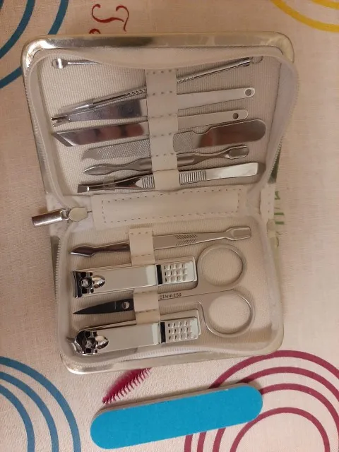 Товар пришёл целым и в отличном качестве. Спасибо продавцу за быструю доставку и качество. За такие деньки это супер ))) всем рекомендую! К маникюрному набору прислали подарок из трёх предметов, они справа от набора показаны )))
