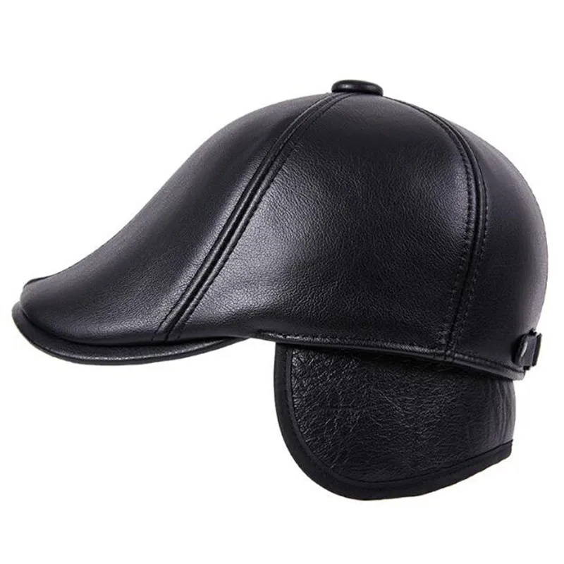 Зимняя шапка с наушниками, мужские береты из воловьей кожи, шапка из натуральной кожи, новые теплые зимние шапки из плотного бархата для пожилых Пап