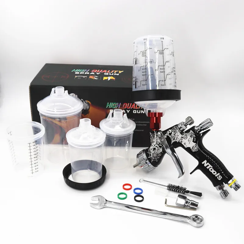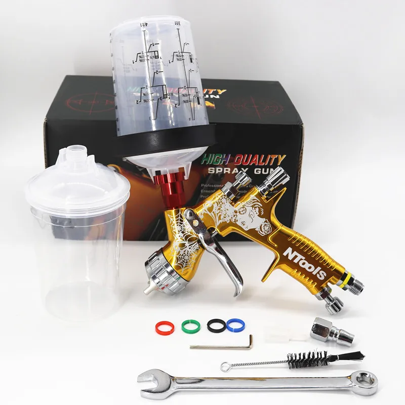 1. Для мирового рынка красок на водной основе 2. Нанесите на краски и Лаки. 3. Классическая удобная ручка, показывающая невероятную обработку и баланс; 4. Инновационный дизайн триггера, ручка плавно и удобно, очень легко чистить и поддерживать. 5. Корпус кованого и прессованного пистолета компактен для предотвращения прыжков краски. 6. Чрезвычайно деликатная обработка поверхности зеркала, корпус пистолета выглядит как прекрасное произведение искусства. 1. Сопла Размеры: 1,3 мм/1,8 мм2. Материал сопла: высококачественный уровень нержавеющей стали.3. Чашка: 400 мл и 600 мл pps бак легко чистить4. Давление: бар; Максимальное давление: 10 бар5. Ширина узора: 15-28 см6. Расход воздуха: когда придет в 2,0 бар воздушный, расход воздуха составляет 270L/мин