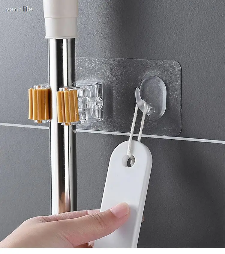 Vanzlife ванная комната настенная вешалка для швабры Бытовая сильная паста Швабра крюк метла Слот для Карт Зажим для швабры стойка для хранения