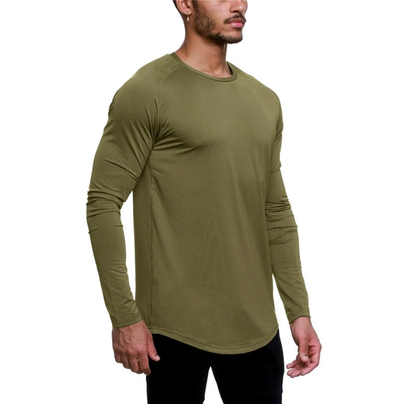 Мужские футболки с длинным рукавом для фитнеса, для пешего туризма, асимметричные, изогнутые, с О-образным вырезом, футболки в стиле хип-хоп, уличная одежда, повседневные топы