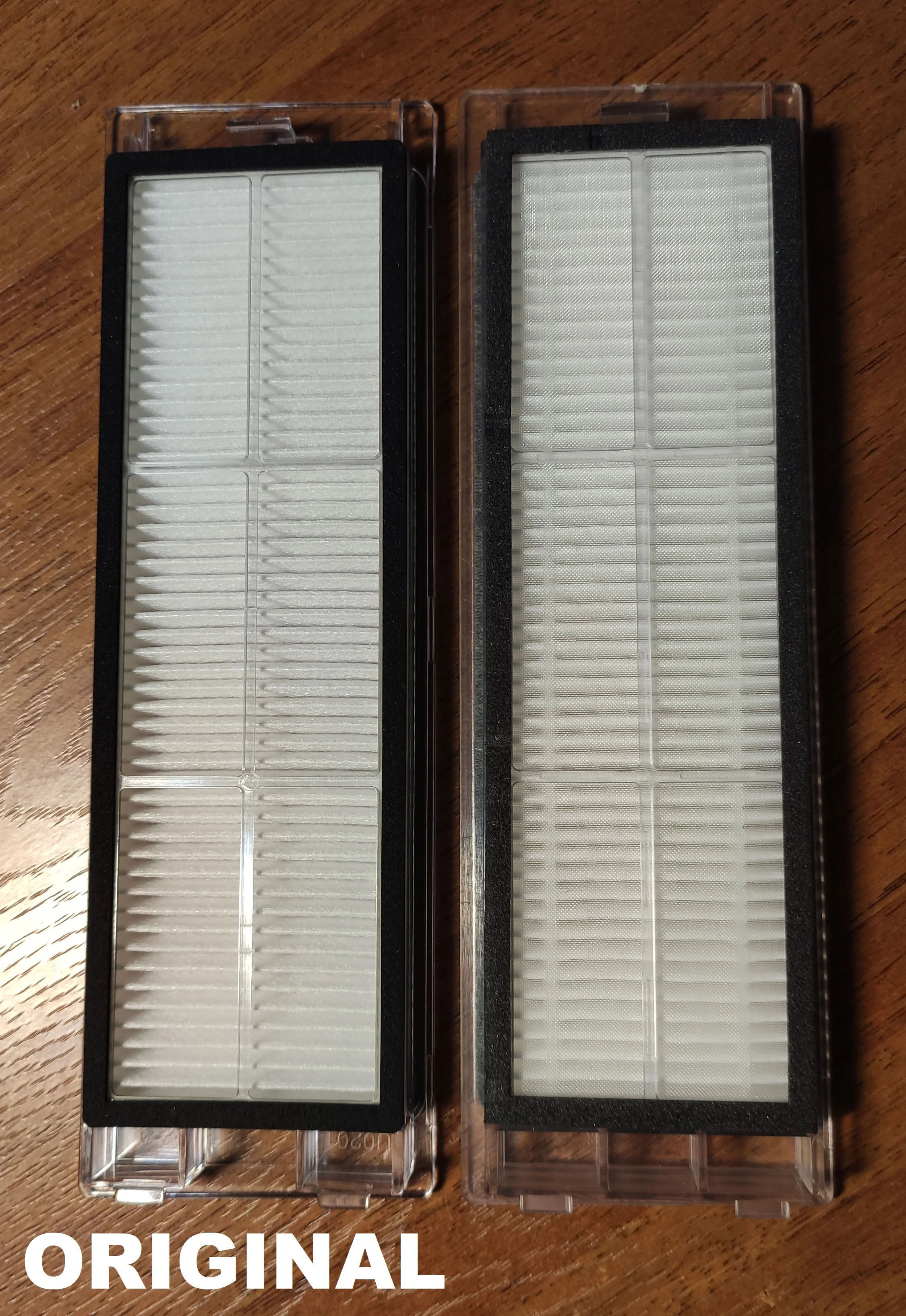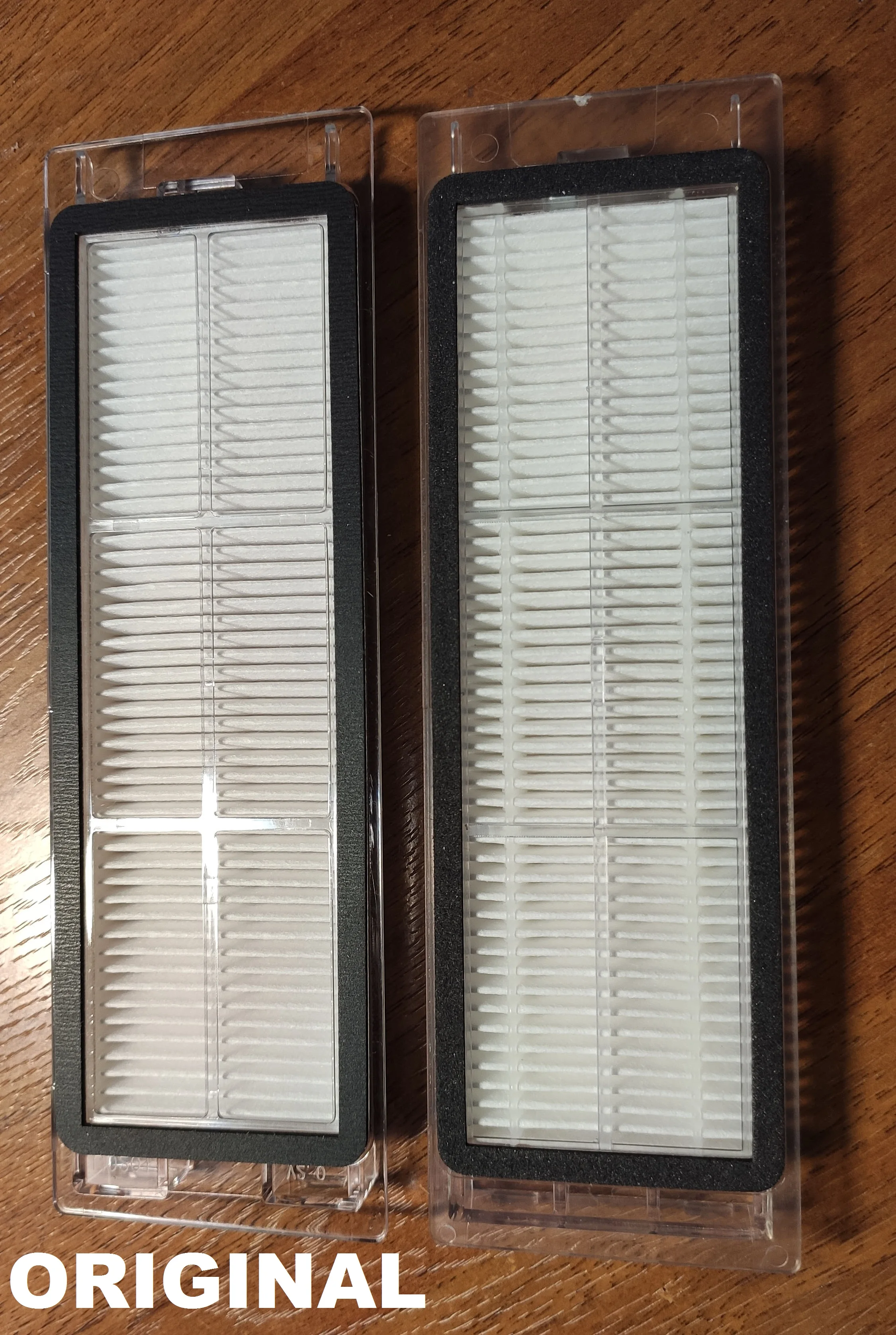 Доставка до Москвы 15 дней. Без картонной упаковки, только пупырчатый пакет, но все целое. Подошли к Xiaomi RoboRock S55 (Black) идеально. В отличии от оригинальных фильтров более пористые и мягкие черные уплотнители, имеется сеточка и дополнительные гребенчатые держатели ребер фильтра (фото 5). Материал фильтра под сильной лупой внешне похож на оригинальный - как прессованная вата. По такой цене - рекомендую!
