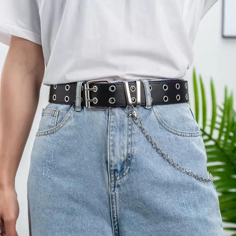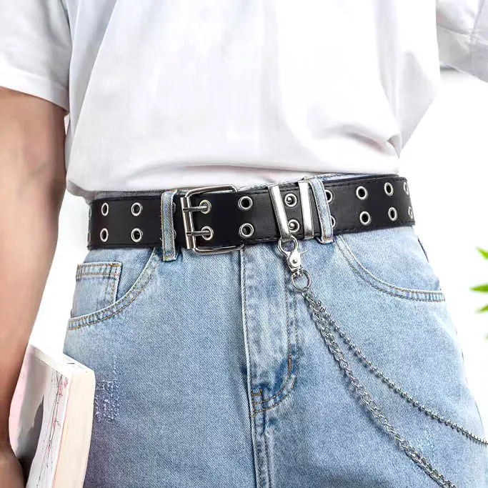 Ремень унисекс с пряжкой в два ряда, стильный пояс в стиле поппанкх...
