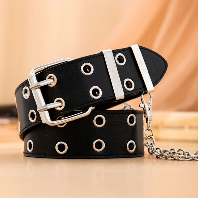 Ремень с цепочкой Женский, кожаный пояс с двумя отверстиями, с клас...
