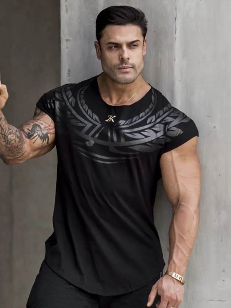 Майка мужская летняя дышащая, с принтом и коротким рукавом летучая мышь