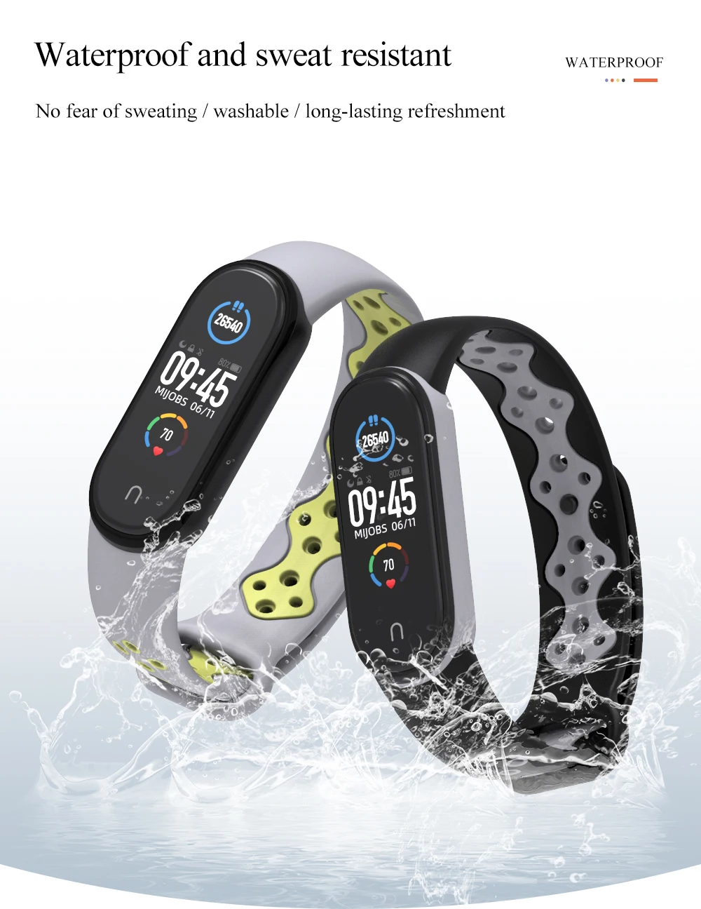 Ремешок силиконовый для Xiaomi Mi Band 3456, Воздухопроницаемый сме...