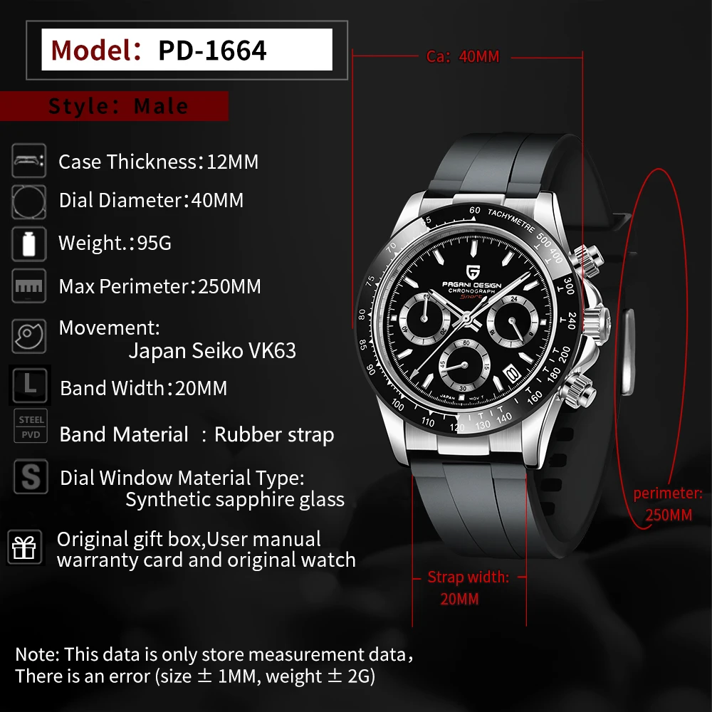 Часы PAGANI DESIGN Мужские кварцевые с хронографом, водонепроницаем...