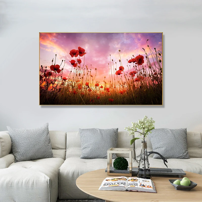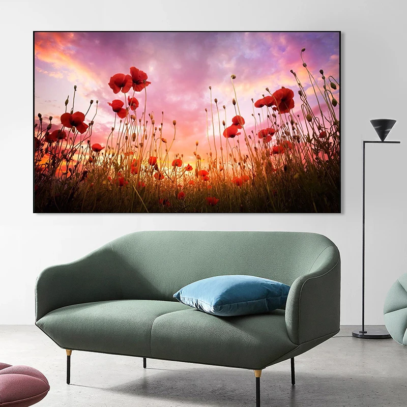 Картина на холсте, красные маки, цветы, плакаты и принты, настенные...