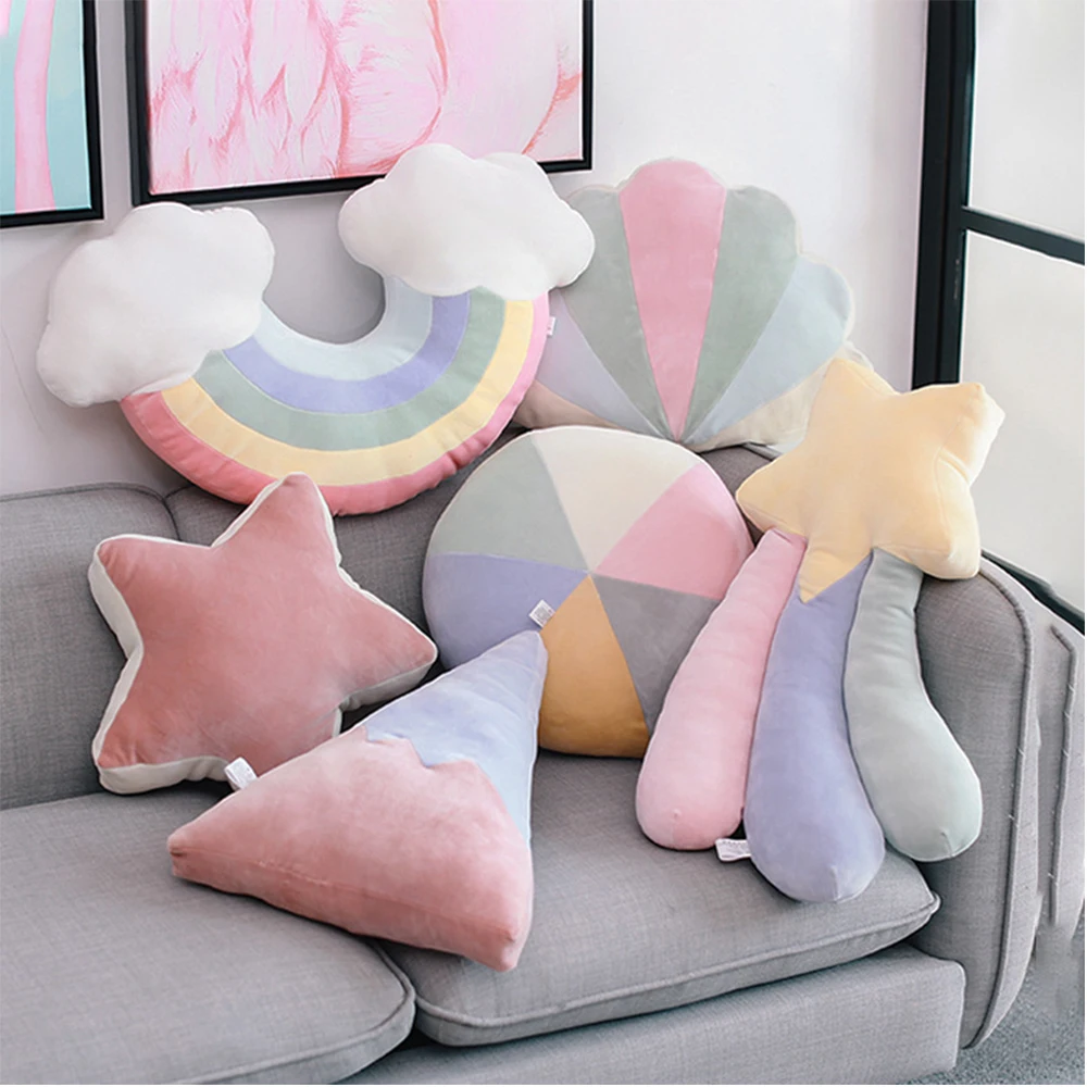Плюшевая игрушка, мягкая красочная луна, радуга, звезда, облако, ракушка, плюшевая подушка, диванная подушка, детская подушка для сна, подарок