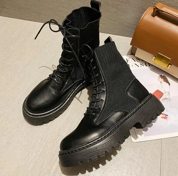 Женские ботильоны 2020, Осенние мотоциклетные ботинки на толстом каблуке, на платформе, обувь Brm, женские модные ботинки без застежки с круглым носком