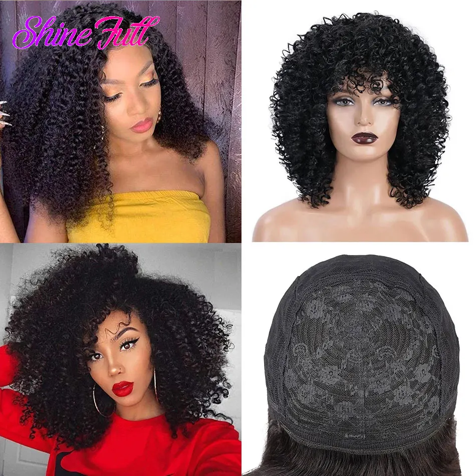 Panse волосы полная машина парики бразильские кудрявые вьющиеся волосы 100% человеческие волосы парики с челкой предварительно сорванные для черных женщин Remy волосы