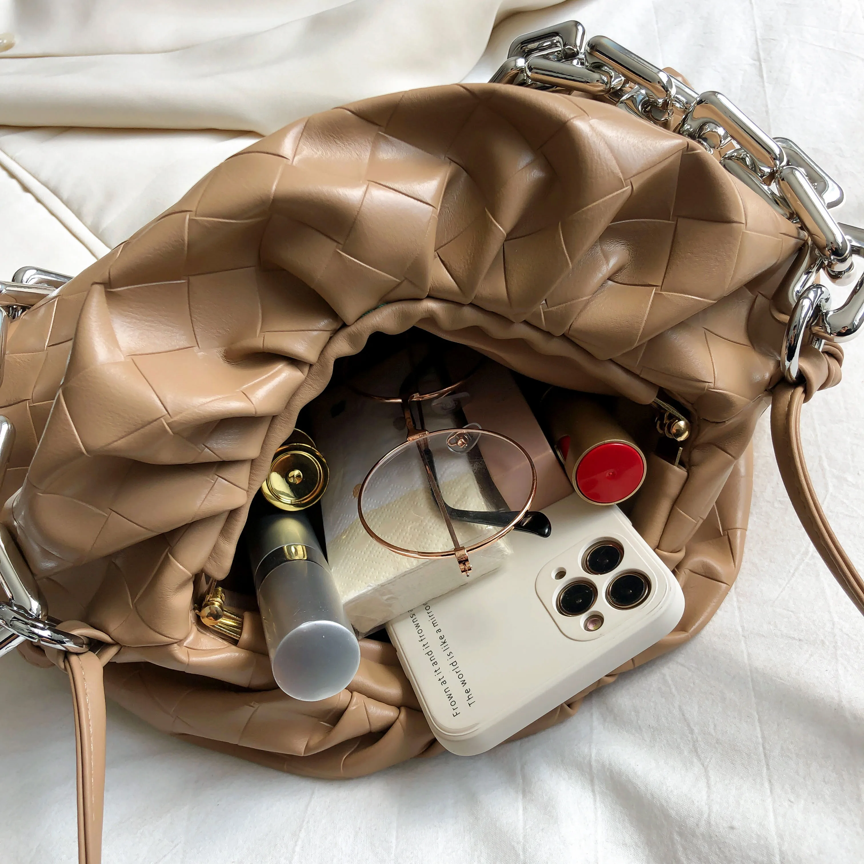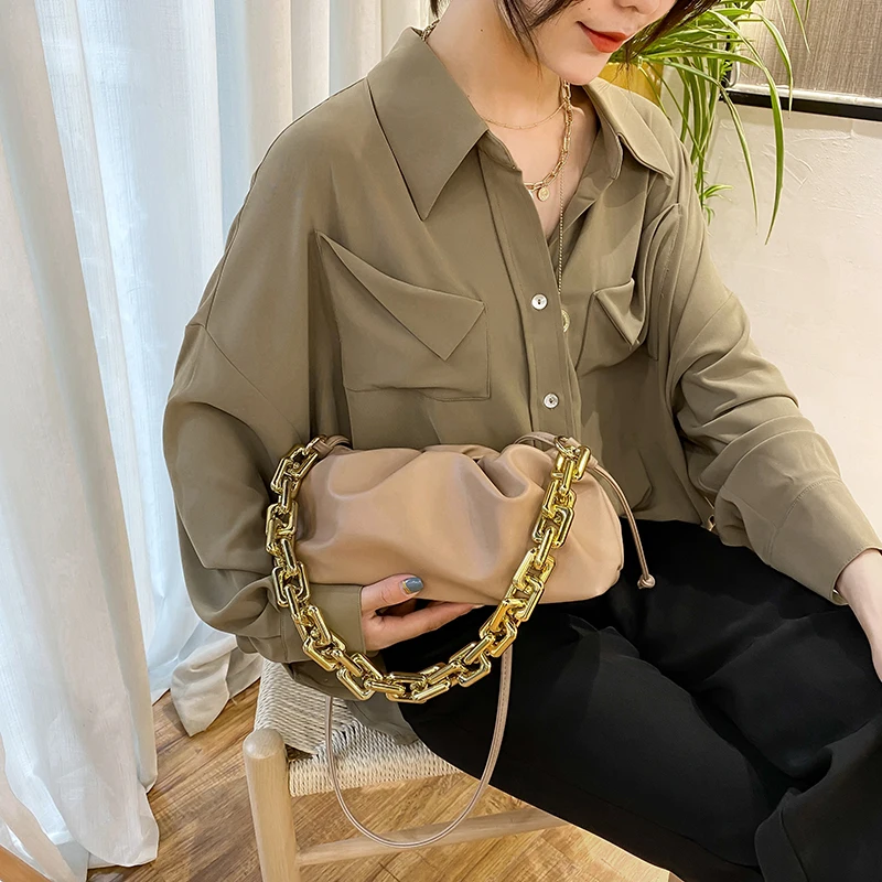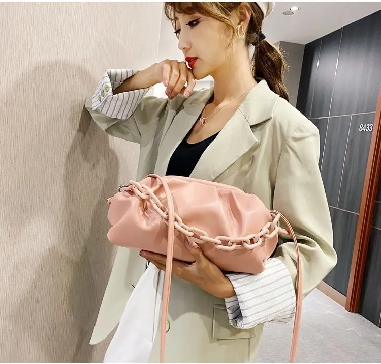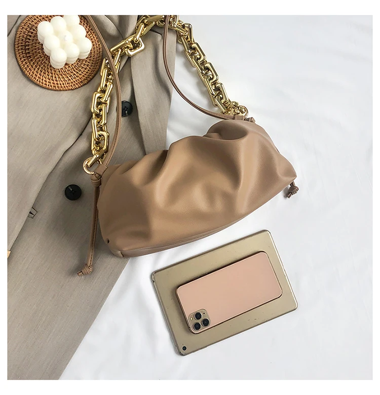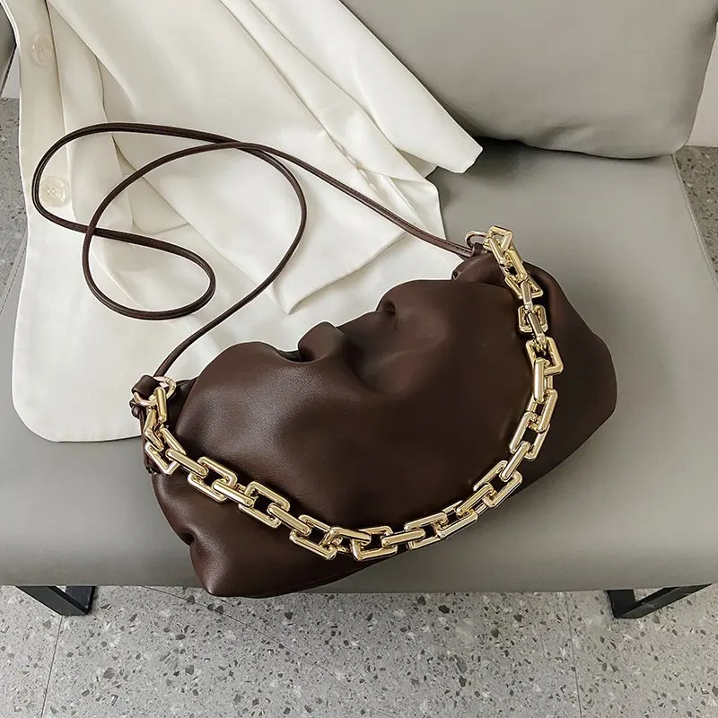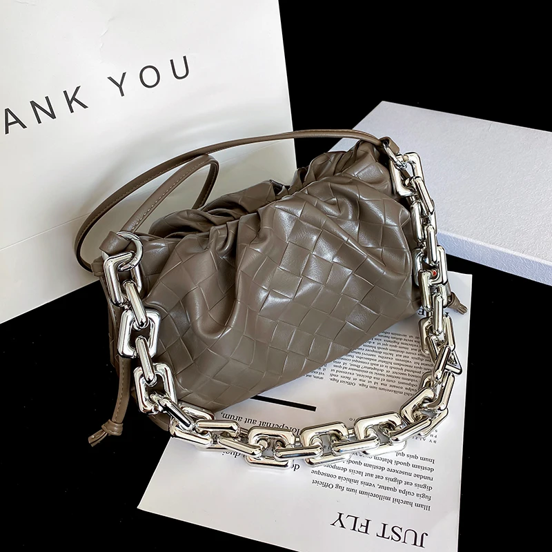 Сумка женская из искусственной кожи на толстой металлической цепочке, сумочка-облако, зимняя дорожная Сумочка, 2021