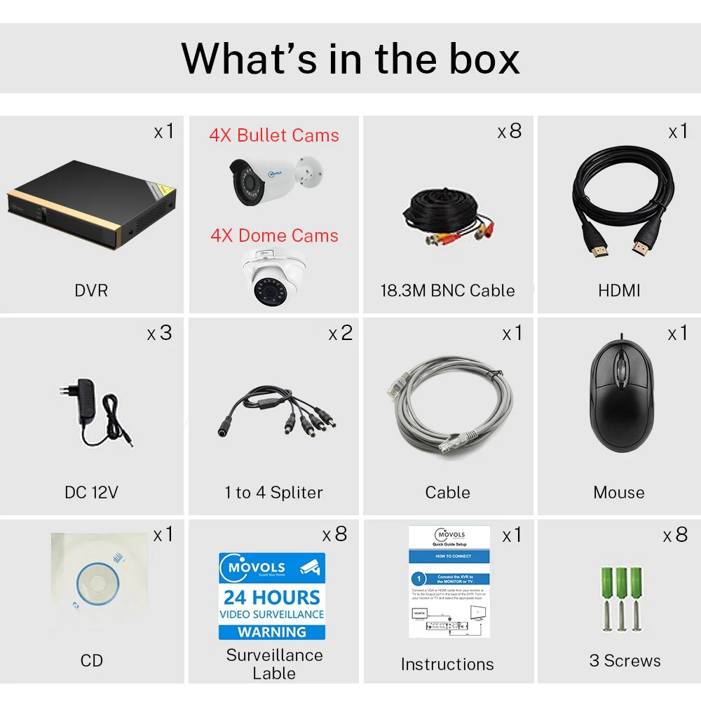 Numbers of Cameras4pcs Bullet 4pcs Dome camera