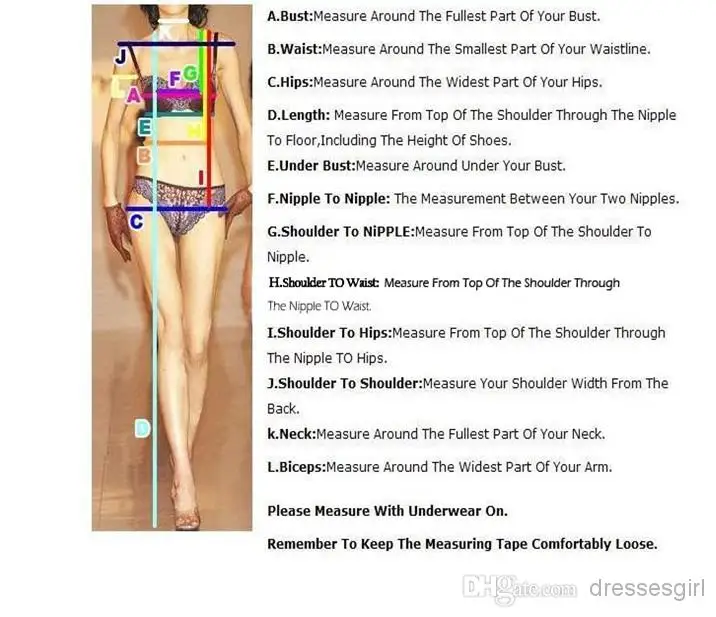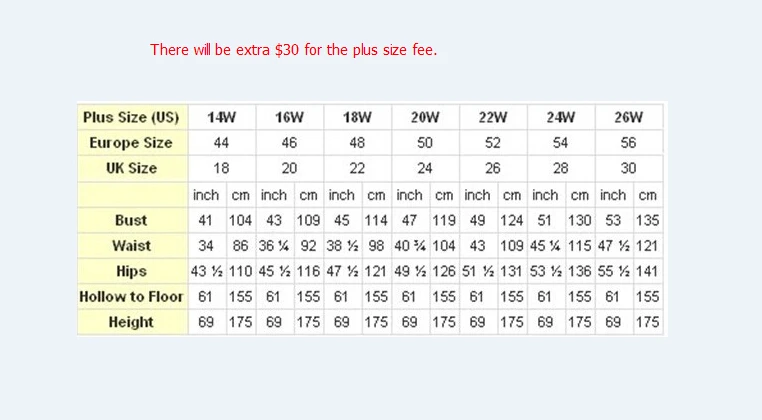 Мы бесплатно предлагаем индивидуальный размер. Пожалуйста, выберите вариант «нестандартный размер» при оформлении заказа и оставьте свои подробные измерения тела в примечании к заказу (пожалуйста, нажмите «специальные инструкции для продавцов» на странице корзины). Вот все измерения, которые нам нужны для настройки.Бюст ______________ дюймов/смТалия _____________ дюймов/смВысота бедер дюйм/смПолый до пола ______ дюймов/смВысота ______________ дюймов/смОбхват руки ___________ дюймов/см (необходимо платье с рукавами)Длина руки __________ дюйм/см (необходимо платье с длинными рукавами)Окружность шеи _____ дюйм/см (необходимо платье с высокой горловиной)