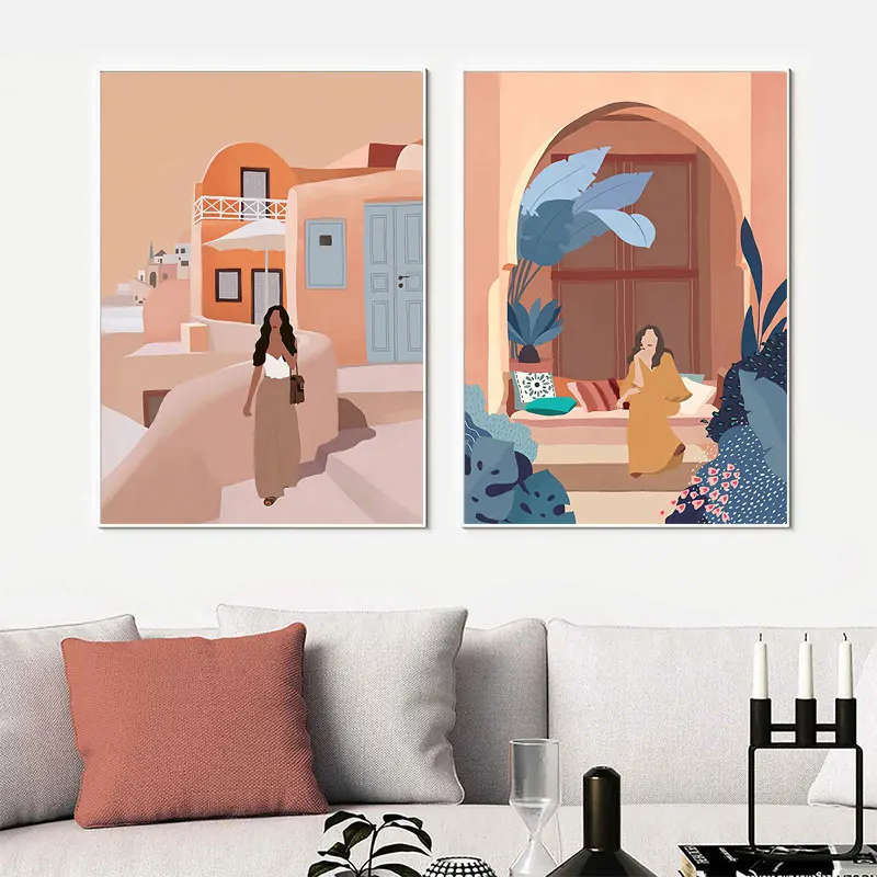 Абстрактная Мода Винтаж девушка искусство холст живопись скандинавс...