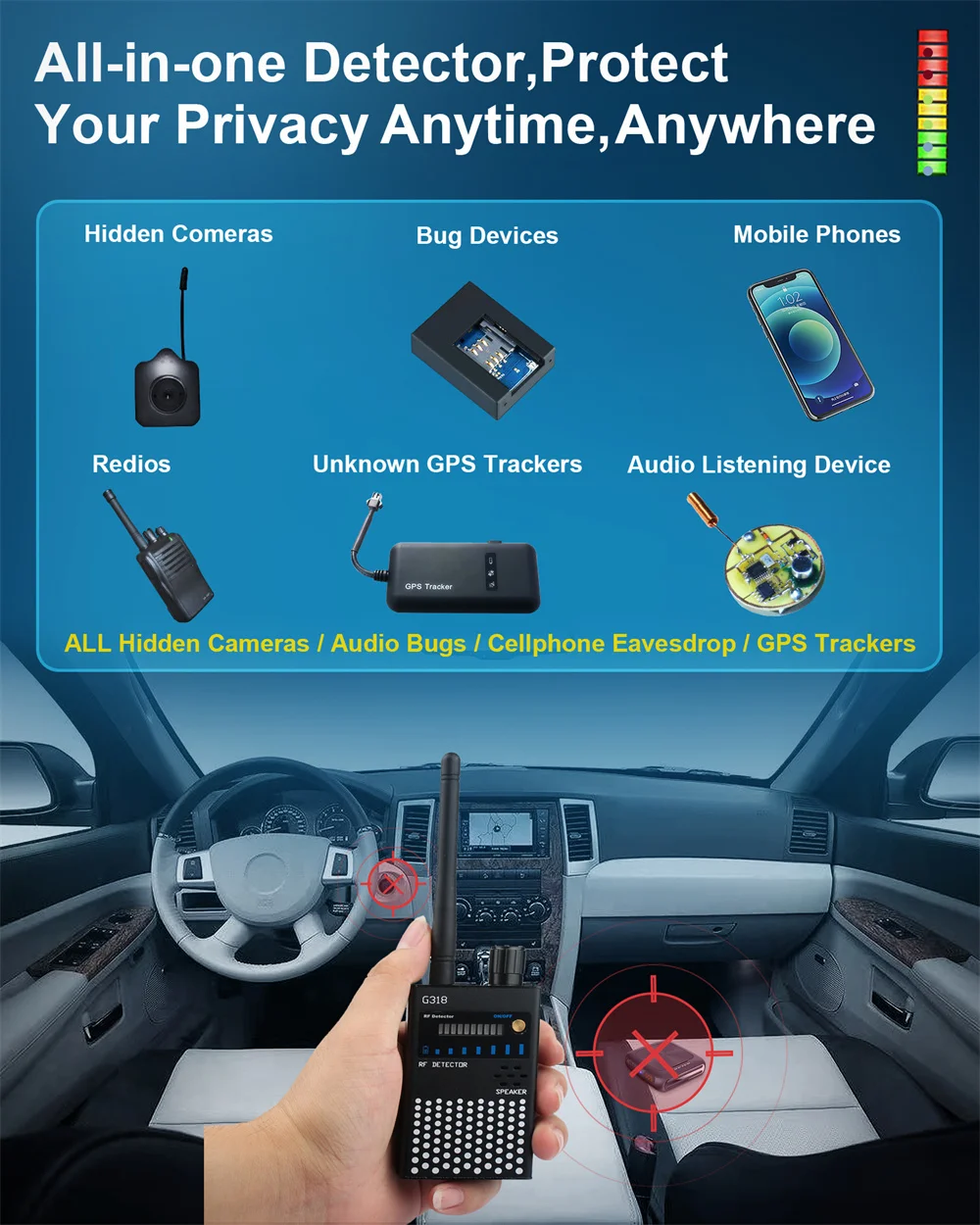 Пожалуйста, нажмите кнопку питания для включения устройства и поверните ручку, чтобы сначала включить третий светодиодный светильник, закройте детектор на свой мобильный телефон, если светодиодный светильник детектора мигает, вы можете отрегулировать детектор близко к области объекта для осмотра, если светодиодный светильник детектора не мигает, Вы можете повернуть ручку, чтобы включить четвертый светодиодный светильник, увеличить чувствительность, затем вы можете получить лучшую производительность, пожалуйста, не включайте десятый светодиодный светильник, он достигнет максимальной чувствительности, устройство сразу же начнет оповещать.